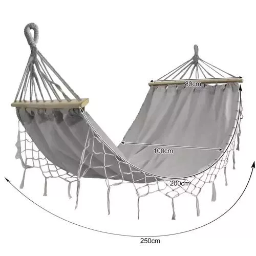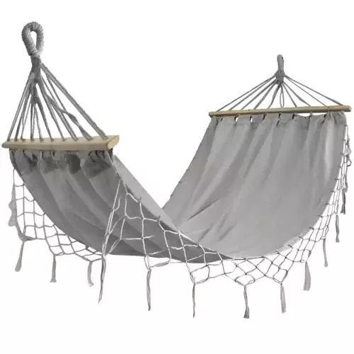 Black Forest függőágy, szürke rojttal, egyszemélyes 200x100 cm, állvánnyal