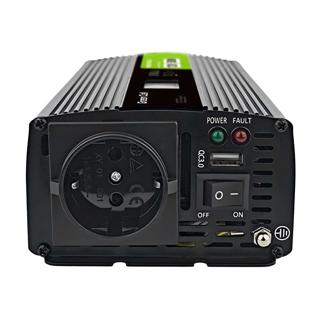 Green Cell Autós Inverter 12V-ról 230V-ra (feszültség növelő) 500W/1000W Tiszta szinuszhullám INVGC12P500LCD személyautóhoz, lakóautóhoz, lakókocsihoz