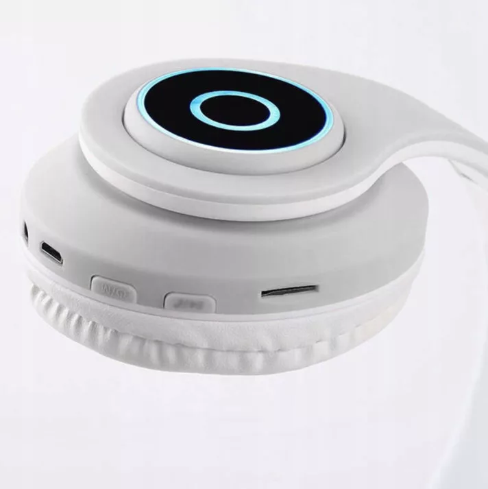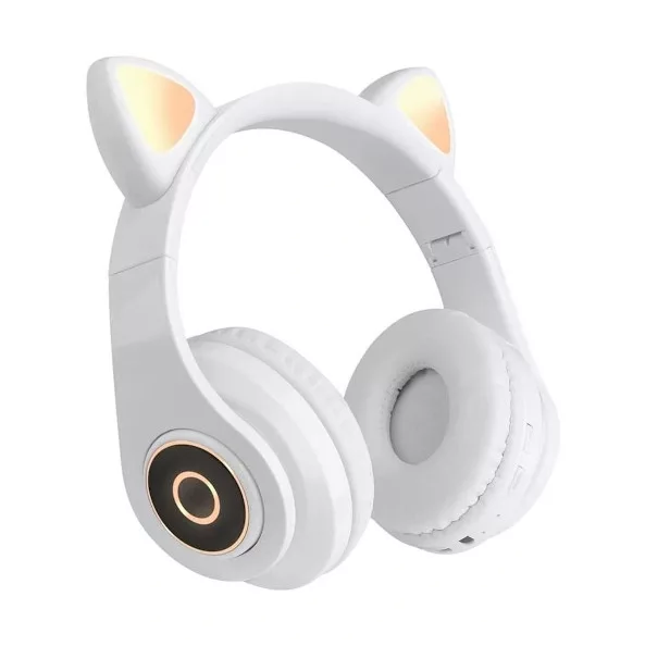 Fehér, vezetékes gyerekfejhallgató macskafüles kialakítással. Kényelmes viselet, jó hangzás és játékos stílus.