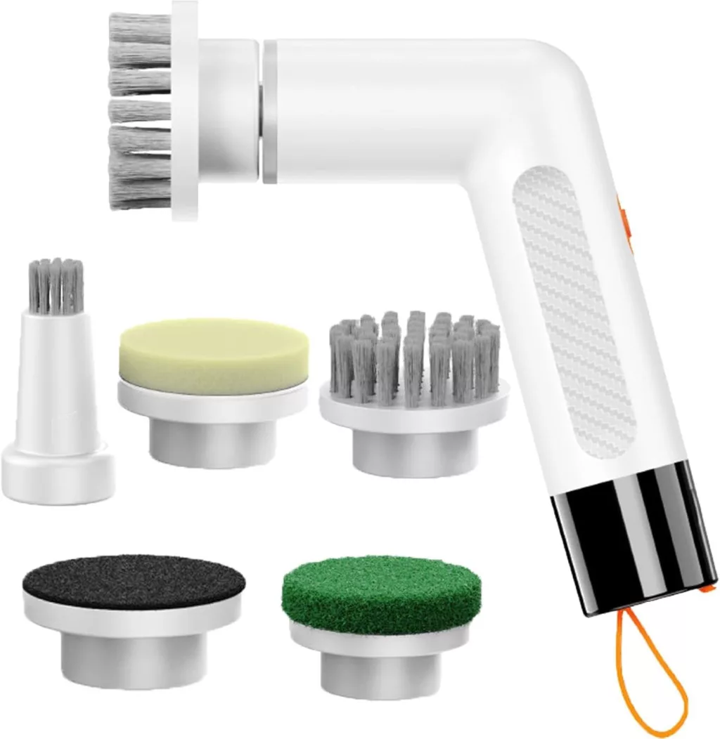 A tisztítókefe öt speciális fejjel érkezik, így sokoldalú eszköz különféle felületekhez.