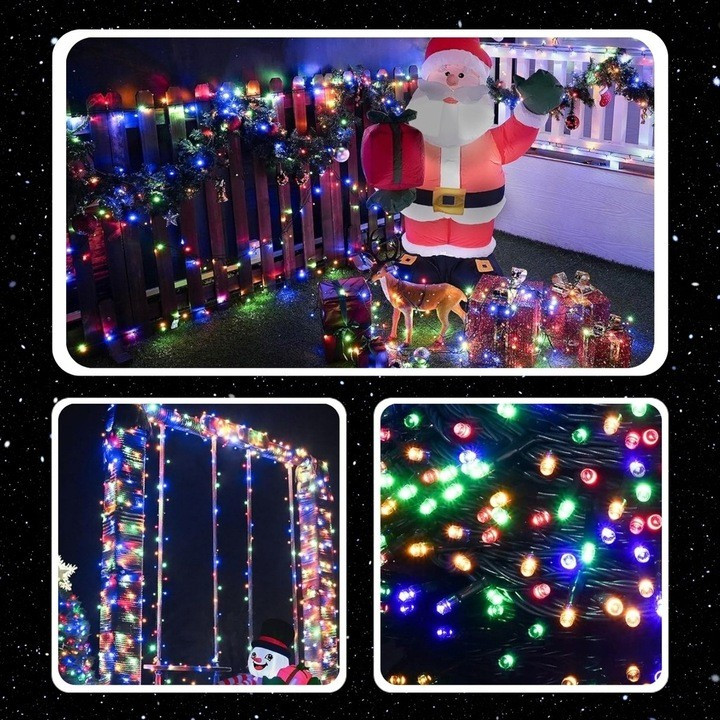 Beltéri/kültéri LED fények élénk multicolor színben ideálisak vidám, dinamikus hangulat megteremtéséhez. A lenyűgöző 20 méteres világító szakasz és 300 LED sűrű, kiterjedt megvilágítást biztosít, amely tökéletes karácsonyfák, ablakok és egyéb terek díszítésére. A 230V-os hálózati tápellátás állandó és megbízható működést garantál, míg a sötétzöld kábel nappal vagy a karácsonyfán szinte észrevétlen marad.