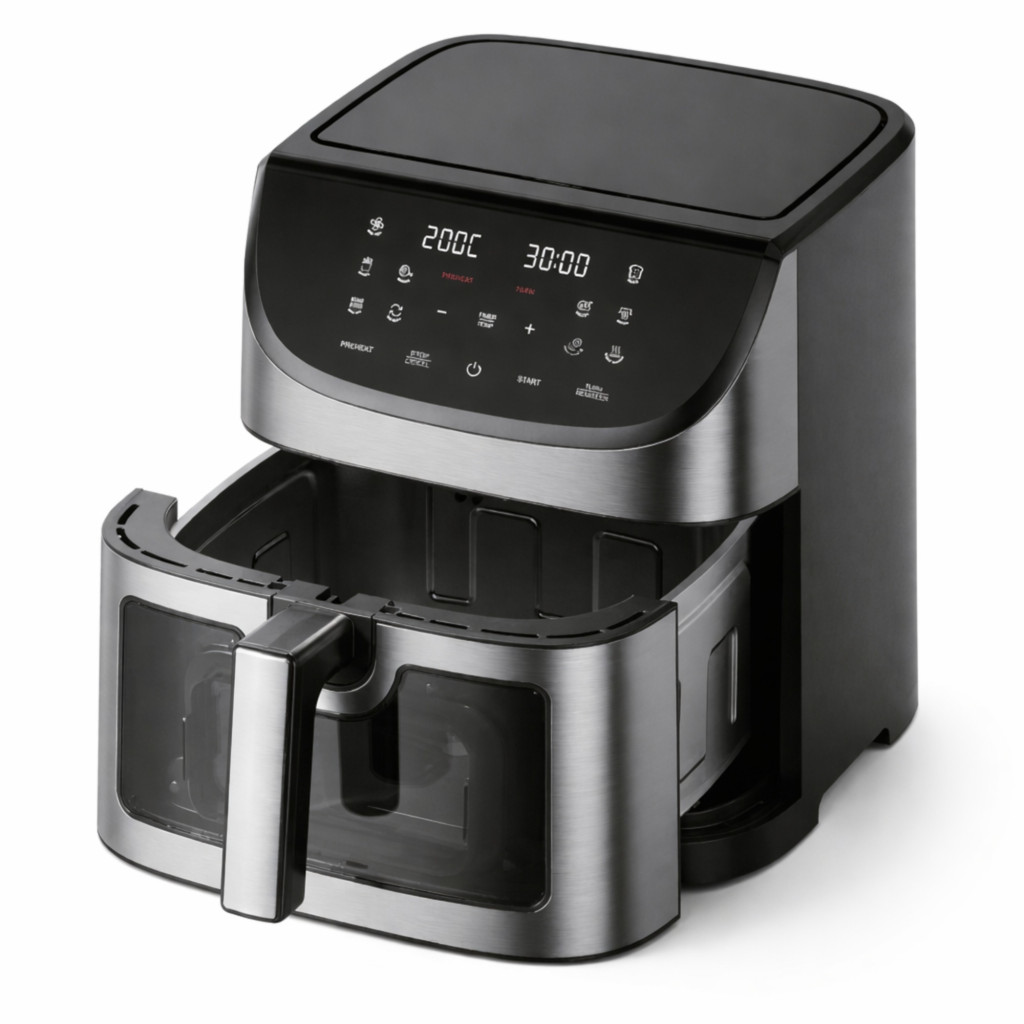 Az 8L kapacitásnak köszönhetően nagyobb adagok elkészítésére is alkalmas, miközben a készülék sütési és fritőz funkcióval is rendelkezik. A kivehető kosár és a kivehető morzsatálca megkönnyíti a tisztítást, a mosogatógépben mosható alkatrészek pedig tovább növelik a használat kényelmét.