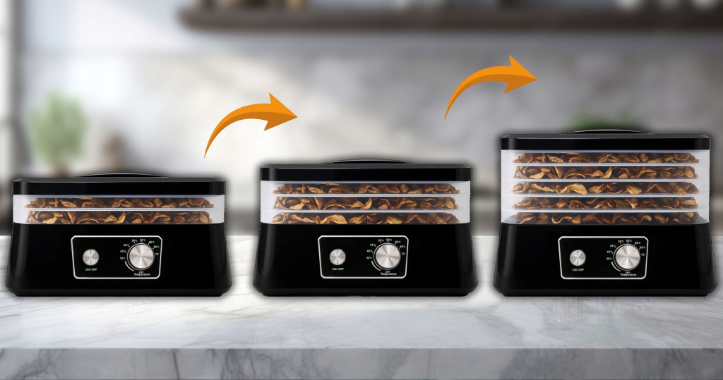 A EXTRALINK HOME aszalógép gombák, gyümölcsök, zöldségek és egyéb élelmiszerek szárítására alkalmas. Szabályozható működésű, erős 500 W teljesítménnyel és 5 tálcával rendelkezik, fekete kivitelben.