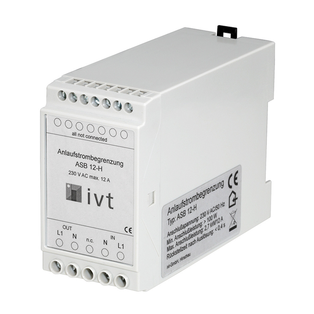 Az IVT ASB 12-H bekapcsolási áram korlátozó megakadályozza a biztosítékok felesleges kioldását, így biztosítva a zavartalan működést. A csomag tartalma: IVT ASB 12-H bekapcsolási áram korlátozó, használati útmutató német, angol, francia és holland nyelven.