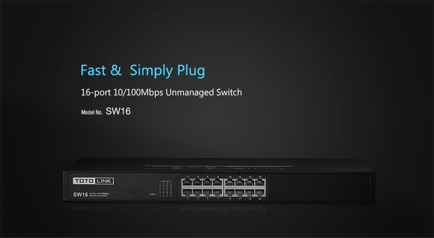 Totolink SW16 | Switch | 16x RJ45 100Mb/s, Rackmount, Unmanaged