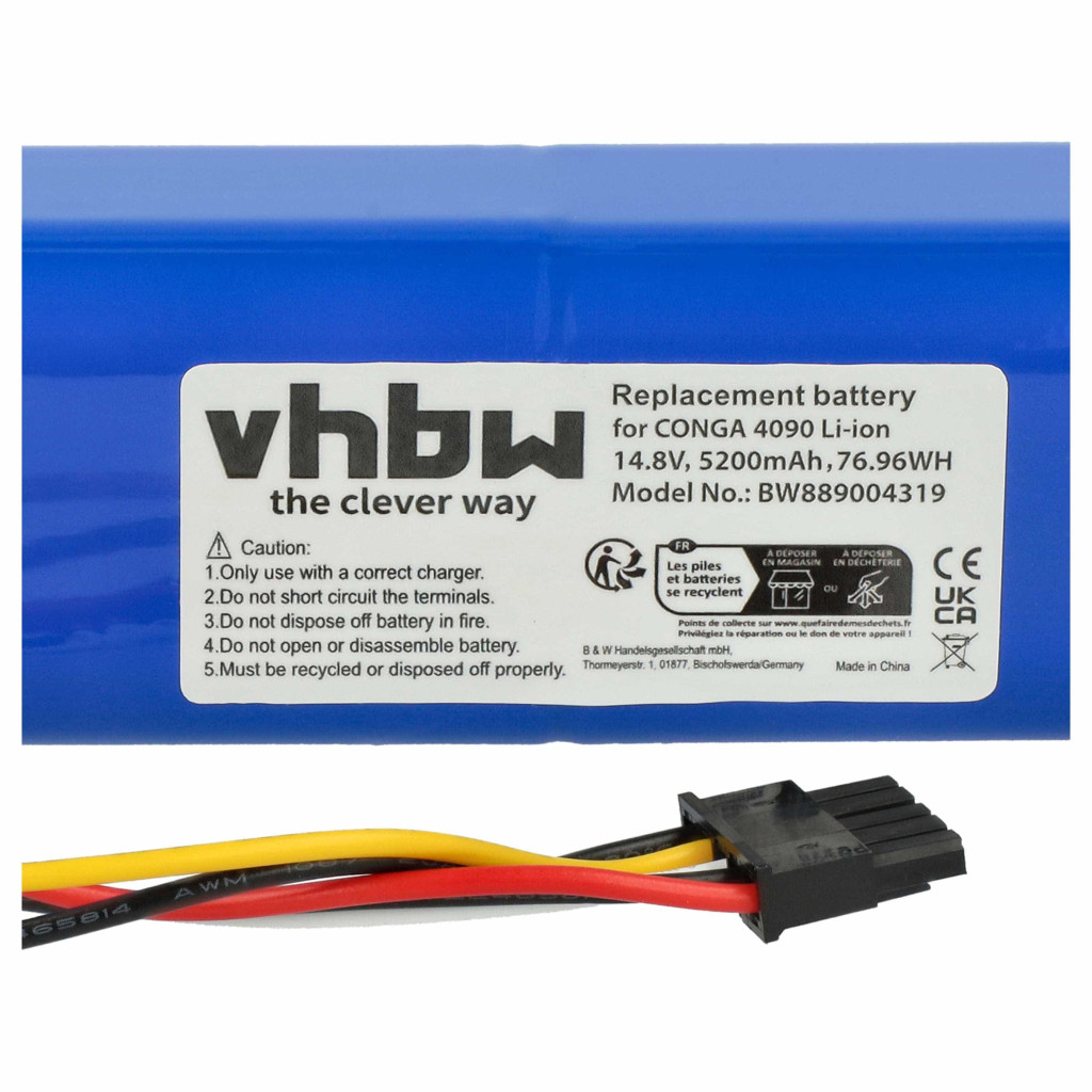 Kompatibilis akkumulátor, amely új életet lehel Cecotec tisztítóeszközébe. Kiváló minőségű pótalkatrész, optimális ár-érték aránnyal. Megbízható működés és teljes kompatibilitás a robotporszívójával. Precízen gyártva, hogy tökéletesen illeszkedjen az eszközébe. CE és RoHs tanúsítvány - teljesíti az üzembiztonság minden irányelvét. Nincs memória effektus. Az akkumulátor akkor is kompatibilis, ha más a kapacitása? Igen! Ha a többi műszaki paraméter, mint a feszültség és a csatlakozások helyesek, az akkumulátor kompatibilis. Az akkumulátor kapacitását milliamperórában (mAh) mérik. Ha a csereakkumulátor nagyobb kapacitású, mint az eredeti, hosszabb üzemidőt biztosít. Ha a kapacitás csak kissé nagyobb vagy kisebb, mint az eredeti akkumulátoré, ez nem eredményez jelentős változást az üzemidőben. Probléma nélkül használhat különböző kapacitású akkumulátorokat. Kiváló minőségű Li-Ion cellák az optimális eszközteljesítményért. A lítium-ion akkumulátorok magas energiasűrűséggel rendelkeznek, és a legerősebb akkumulátorok közé tartoznak. A NiMH akkumulátorokkal szemben alacsony önkisülési rátával rendelkeznek, és nem érinti őket a memória effektus. Nem igényelnek rendszeres lemerítést, így alacsony karbantartási igényűek. Helyes tárolás esetén ezek az újratölthető akkumulátorok hosszú élettartamúak, tartósak és magas töltési ciklusszámmal rendelkeznek. A Li-ion akkumulátorokat különböző hordozható eszközökben használják, amelyek magas energiaigényűek, pl. okostelefonok, notebook számítógépek, kamerák és elektromos szerszámok. Ezek az akkumulátorok rádióvezérelt modellekben és telekommunikációs alkalmazásokban is használhatók. A termékbiztonságot illetően: Ez a termék az EU-ban hatályos szabályozásoknak megfelelően készült. Többek között teljesíti a 2011/65/EU irányelv (RoHS) és a CE jelölés követelményeit. A gyártás a termékbiztonságra, környezeti kompatibilitásra és minőségbiztosításra vonatkozó releváns szabályozások betartásával történik. Kompatibilis eszközök: Cecotec Conga 4090, Cecotec Conga 4490, Cecotec Conga 4590, Cecotec Conga 4690, Cecotec Conga 5090, Cecotec Conga 5490, Cecotec Conga 6090, Cecotec Conga 7090
