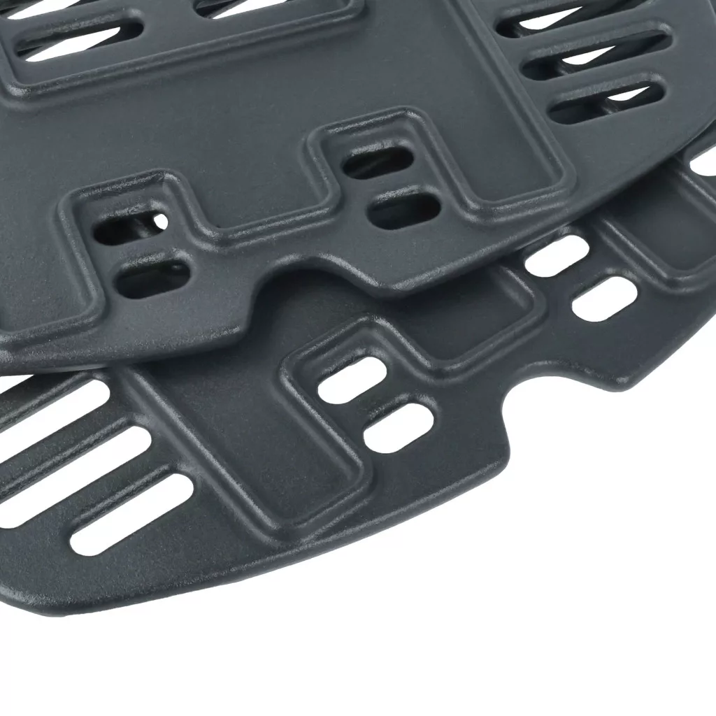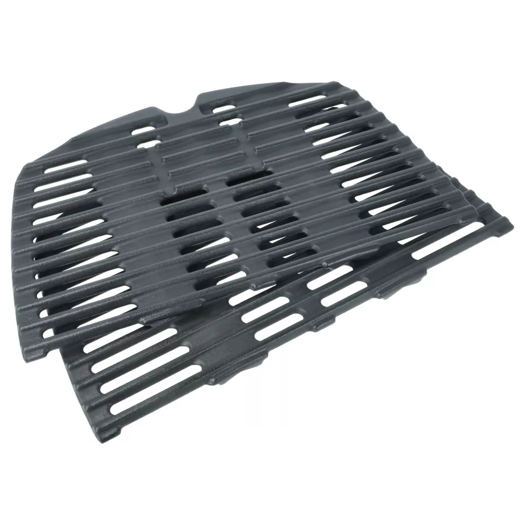 Robusztus BBQ grillrács készlet, szilárd öntöttvasból készült grillekhez és gázgrillekhez. Jól megtervezett a könnyű cseréhez, teljes funkcionalitást és kompatibilitást biztosít a Weber otthoni grilljével. Egyenletes hőelosztást és intenzív barbecue aromát biztosít, helyettesíti a Weber 7644-et. Ha kompatibilis és költséghatékony BBQ rács készletet keres, jó helyen jár. Még a legjobb grillezési este is tönkremehet egyenetlenül sült steak vagy langyos grillezett zöldségek miatt. Ezzel az öntöttvas grillráccsal minden hús vagy hal és minden zöldség tökéletesen sikerül: kívül gyönyörűen barnára sül, belül pedig szaftos és aromás. Az öntöttvas egyenletesen osztja el a hőt az egész felületen, és hosszú ideig megtartja azt. Ez lehetővé teszi, hogy magas hőmérsékletet és intenzív barbecue aromát érjen el, ami ételeinek azt az utánozhatatlan ízt és ínycsiklandóan barnult felületet adja. A könnyű acélrácsokkal ellentétben ez a főzőrács különösen robusztus, méretstabil és tartós, biztosítva a folyamatosan magas grillezési minőséget sok éven át. A tisztítás egyszerű: melegítse elő a grillrácsot a legmagasabb fokozaton körülbelül 15 percig, majd miután lehűlt, kefélje le egy grillkefével. Így a grillrácsa tiszta, jól karbantartott és készen áll a grillezésre. CE és RoHs tanúsítvány - teljesíti az üzembiztonság minden irányelvét. Kompatibilis eszközök: Weber Q 100, Weber Q 1000