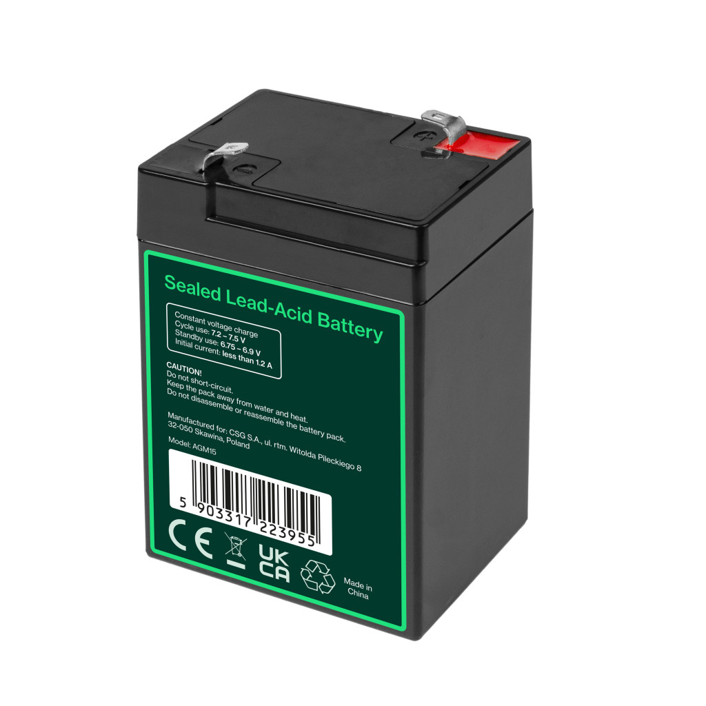 Kapazität: 4 Ah | Spannung: 6V | Typ: VRLA AGM | Garantie: 24 Monate | Zellenhersteller: Green Cell | Zustand: Neu | Farbe: Schwarz | Produktcode: AGM15 | Hersteller: Green Cell | Größe: 70 × 47 × 104 mm | Gewicht: 0.68 kg AM 4.5;EP 4.5;NP 4;