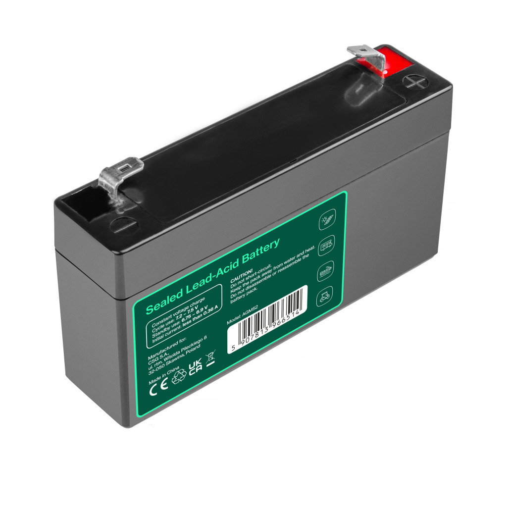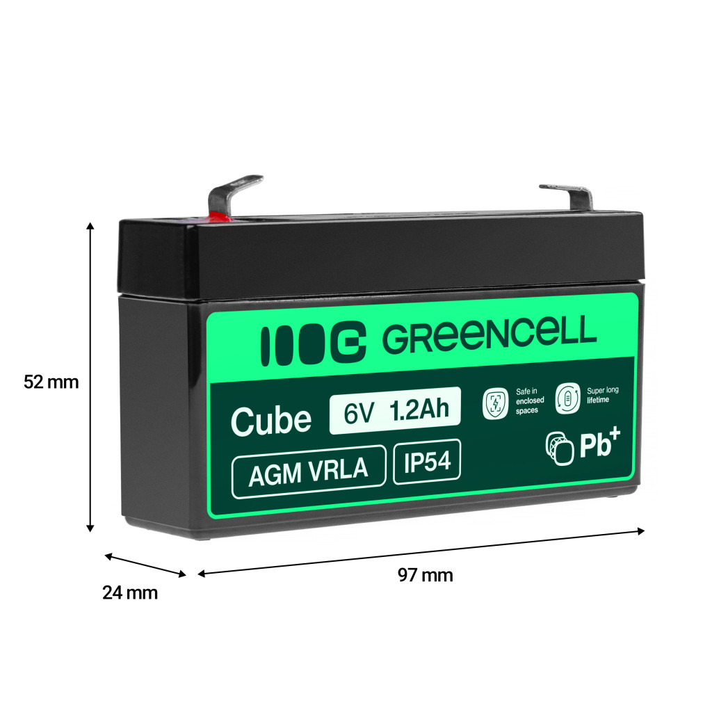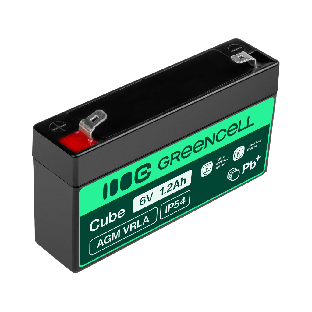 Spannung: 6V | Kapazität: 1.2Ah | Garantie: 24 Monate | Typ: VRLA AGM | Produktcode: AGM52 | Hersteller: Green Cell | Anschluss: Faston 187 (F1) | Lebensdauer: 5 Jahre