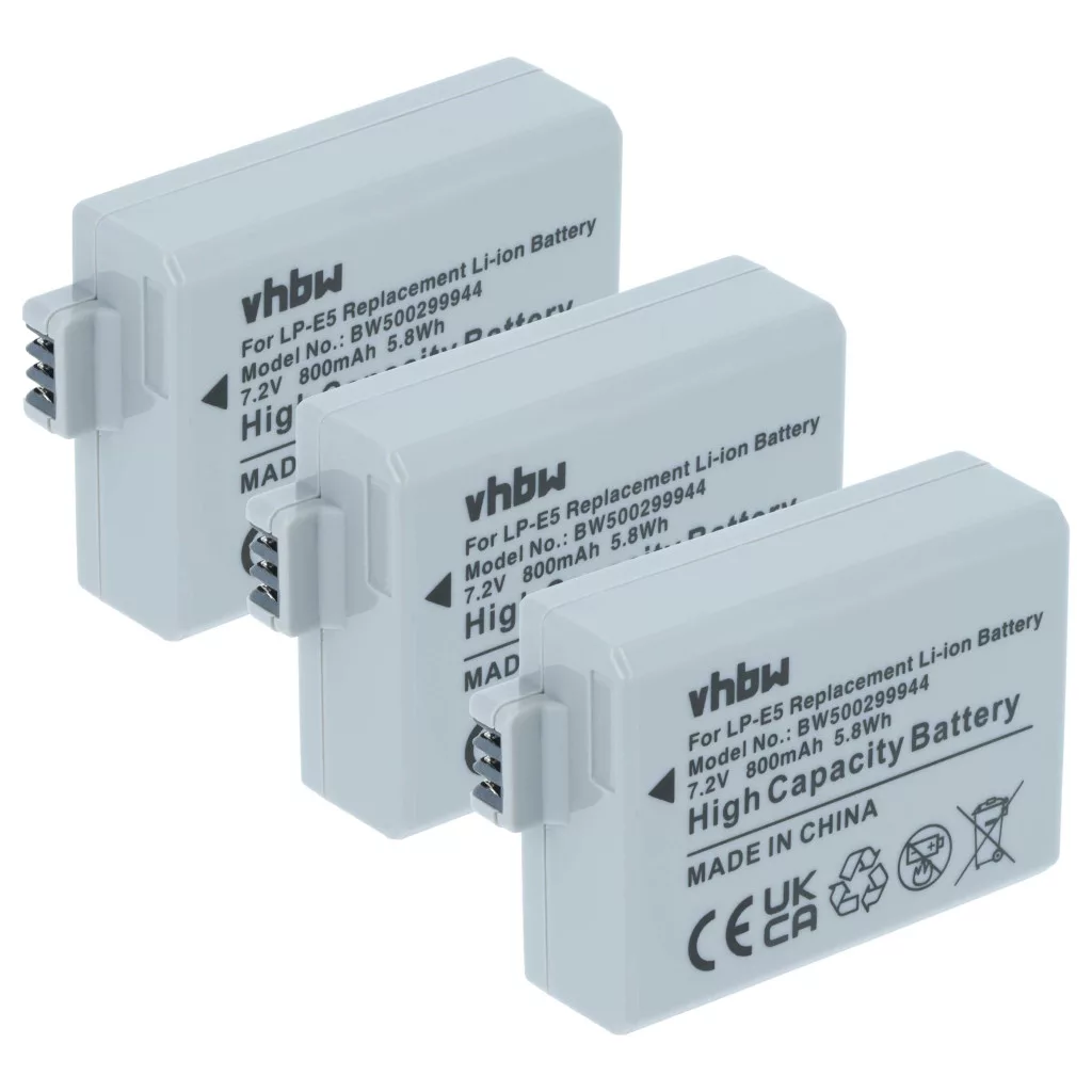 Kompatible Akkus, die deinem Canon Kamera, deiner Spiegelreflexkamera neues Leben einhauchen. Hochwertige Komponenten mit optimalem Preis-Leistungs-Verhältnis. Zuverlässiger Betrieb und vollständige Kompatibilität mit deiner Digitalkamera. Präzise gefertigt, um perfekt in dein Gerät zu passen. CE- und RoHs-Zertifikat - erfüllt alle Richtlinien zur Betriebssicherheit. Kein Memory-Effekt. Hochwertige Li-Ion-Zellen für optimale Geräteleistung. Lithium-Ionen-Akkus haben eine hohe Energiedichte und gehören zu den leistungsstärksten Akkus. Im Vergleich zu NiMH-Akkus haben sie eine niedrige Selbstentladungsrate und sind nicht vom Memory-Effekt betroffen. Sie erfordern keine regelmäßige Entladung, wodurch sie einen geringen Wartungsaufwand haben. Bei richtiger Lagerung sind diese wiederaufladbaren Akkus langlebig, robust und halten viele Ladezyklen aus. Li-Ion-Akkus werden in verschiedenen tragbaren Geräten verwendet, die einen hohen Energiebedarf haben, wie Smartphones, Notebooks, Kameras und Elektrowerkzeuge. Diese Akkus können auch in funkferngesteuerten Modellen und Telekommunikationsanwendungen eingesetzt werden. Kompatible Geräte: Canon Digital Rebel XSi, Canon EOS 450D, Canon EOS 500D, Canon EOS 1000D, Canon EOS Kiss F, Canon EOS Kiss X2, Canon EOS Kiss X3, Canon EOS REBEL XS 18-55IS KIT, Canon EOS Rebel T1i, Canon EOS Rebel XS, Canon EOS XSI EF-S 18-55IS KIT