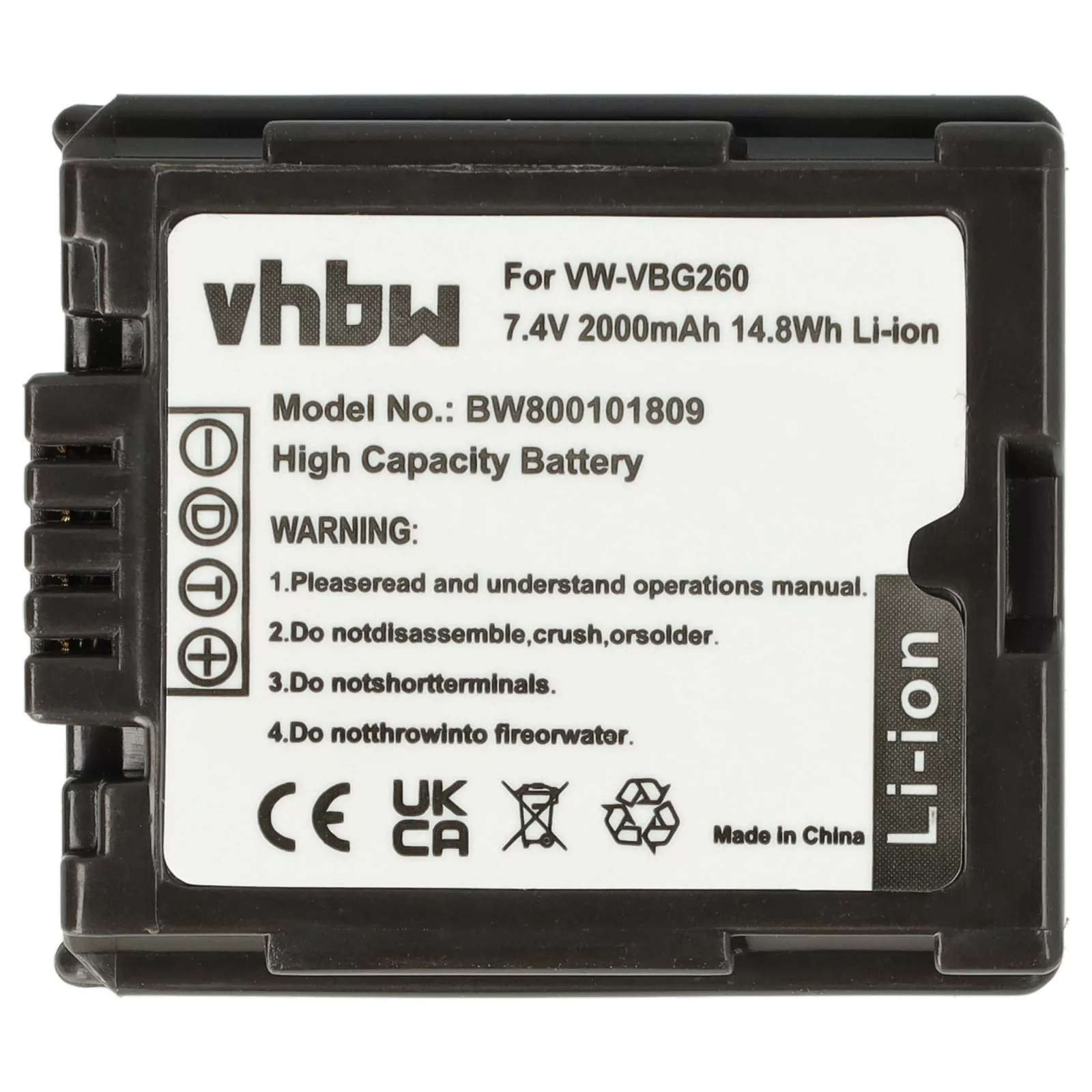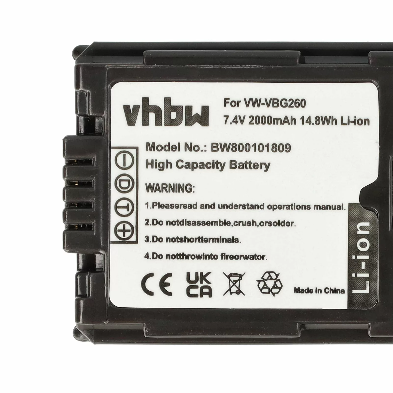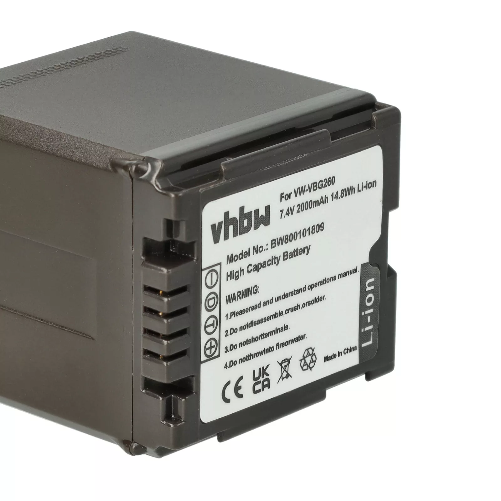 VHBW Videokamera Akkumulátor VW-VBG260 - 2000 mAh 7,2 V Li-Ion