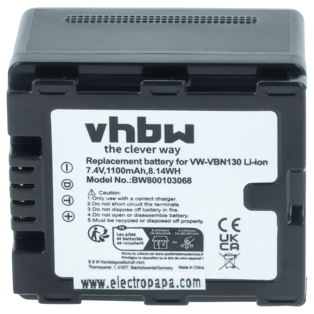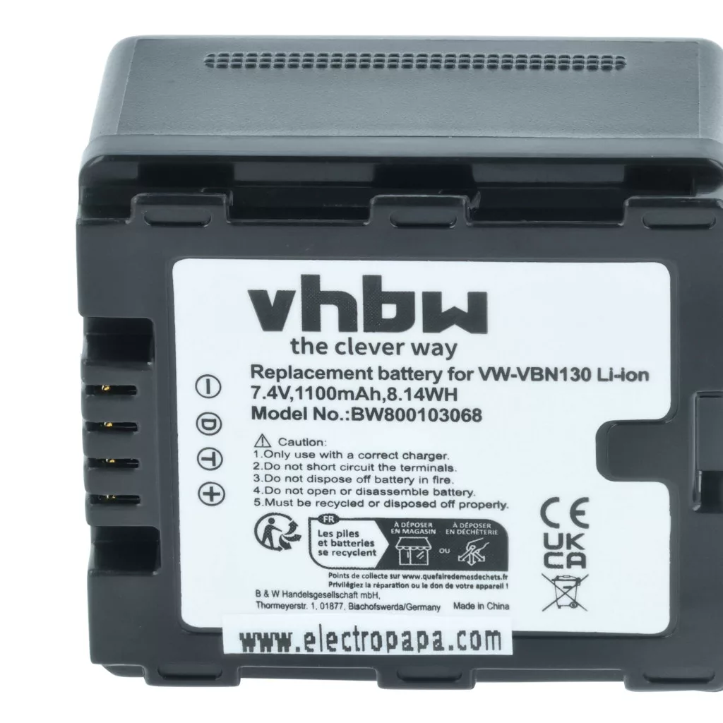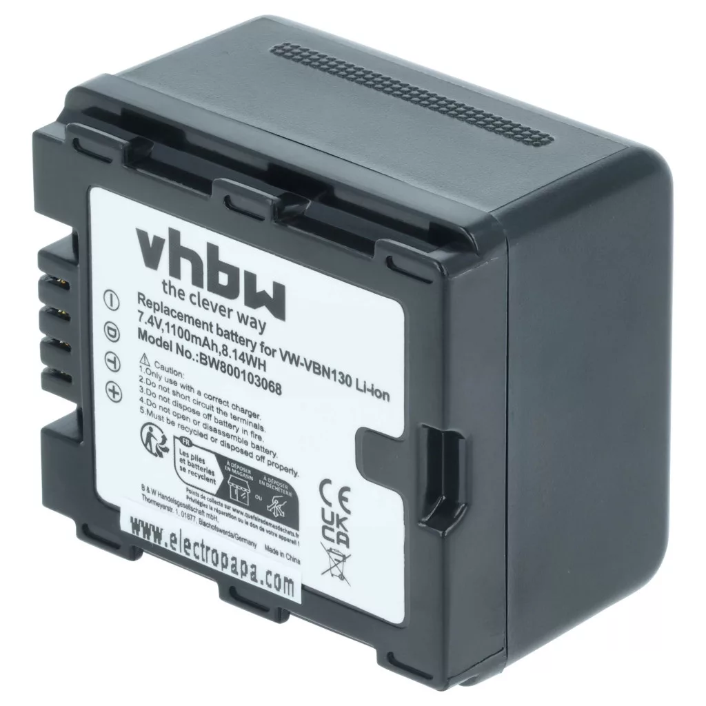 Kompatible Geräte: Panasonic HC-X800, Panasonic HC-X810, Panasonic HC-X900, Panasonic HC-X900M, Panasonic HC-X909, Panasonic HC-X929, Panasonic HDC-HS900, Panasonic HDC-SD800, Panasonic HDC-SD900, Panasonic HDC-SD909, Panasonic HDC-TM900, Panasonic VW-VBN130, Panasonic VW-VBN130E, Panasonic VW-VBN130E-K, Panasonic VW-VBN260, Panasonic VW-VBN260E, Panasonic VW-VBN260E-K