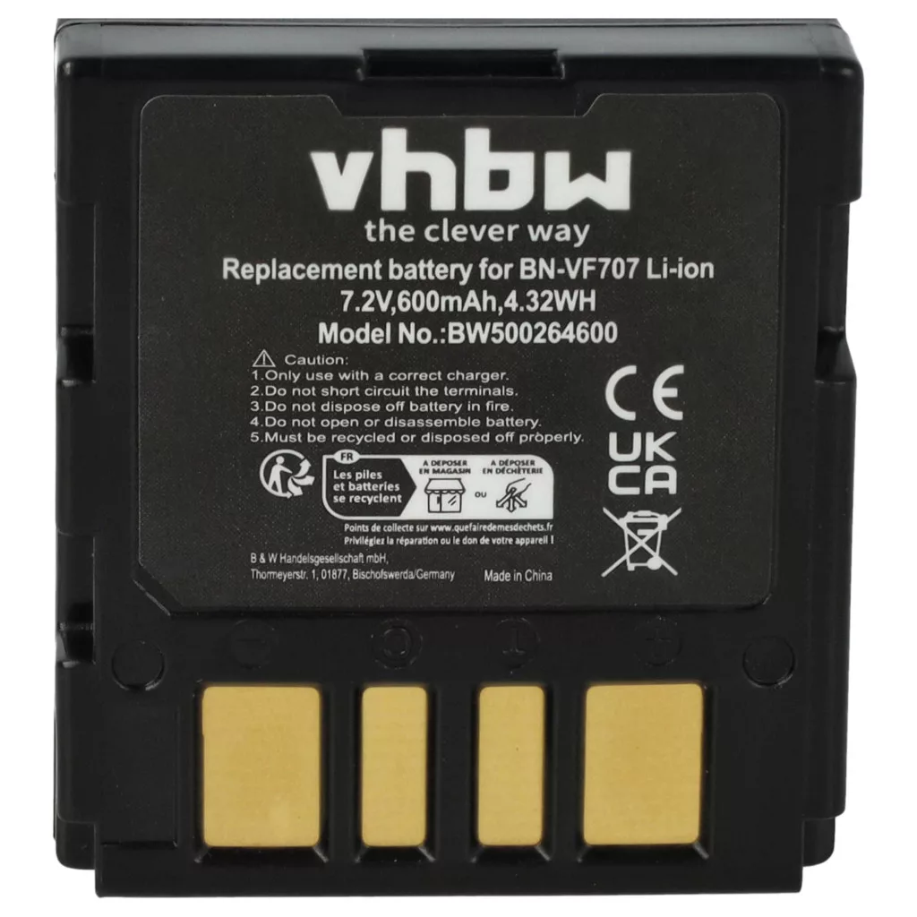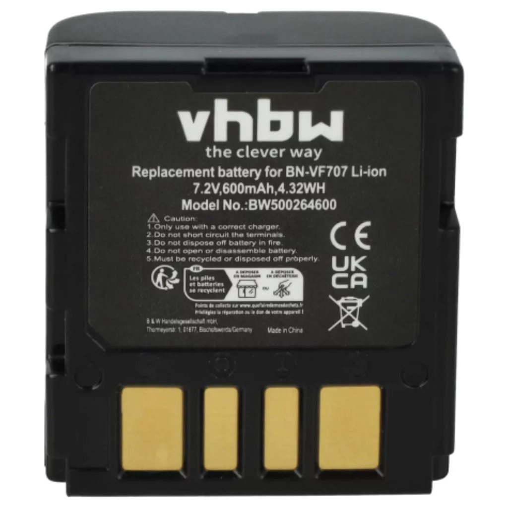 Kompatible Akkus hauchen Ihrer JVC Videokamera und Kamera neues Leben ein. Hochwertige Komponenten mit optimalem Preis-Leistungs-Verhältnis. Zuverlässiger Betrieb und vollständige Kompatibilität mit den Videoaufnahmegeräten. Präzise Fertigung für eine perfekte Passform. CE- und RoHS-Zertifizierung - erfüllt alle Richtlinien zur Betriebssicherheit. Kein Memory-Effekt. Hochwertige Li-Ion-Zellen für optimale Geräteleistung. Lithium-Ionen-Akkus haben eine hohe Energiedichte und gehören zu den leistungsstärksten Akkus. Im Vergleich zu NiMH-Akkus haben sie eine niedrige Selbstentladungsrate und leiden nicht unter dem Memory-Effekt. Sie benötigen keine regelmäßige Entladung, wodurch sie einen geringen Wartungsaufwand haben. Bei richtiger Lagerung sind diese wiederaufladbaren Akkus langlebig, robust und haben eine hohe Ladezyklenanzahl. Li-Ion-Akkus werden in verschiedenen tragbaren Geräten verwendet, die einen hohen Energiebedarf haben, wie z.B. Smartphones, Notebooks, Kameras und Elektrowerkzeuge. Diese Akkus können auch in fernbedienten Modellen und Telekommunikationsanwendungen eingesetzt werden. Kompatible Geräte: JVC GR-D239, JVC GR-D240, JVC GR-D240E, JVC GR-D240EG, JVC GR-D240EX, JVC GR-D245, JVC GR-D245E, JVC GR-D245EG, JVC GR-D247, JVC GR-D250, JVC GR-D250U, JVC GR-D250US, JVC GR-D270, JVC GR-D270E, JVC GR-D270EG, JVC GR-D270EX, JVC GR-D270US, JVC GR-D271, JVC GR-D271US, JVC GR-D275, JVC GR-D275US, JVC GR-D290, JVC GR-D290E, JVC GR-D290EG, JVC GR-D290US, JVC GR-D295, JVC GR-D295 US, JVC GR-D325, JVC GR-D325EG, JVC GR-D345, JVC GR-D345EG, JVC GR-D360, JVC GR-D360EX, JVC GR-D370, JVC GR-D370EX, JVC GR-D450, JVC GR-D450E, JVC GR-D450EG, JVC GR-D645, JVC GR-D645EG, JVC GR-D650, JVC GR-D650EX, JVC GR-DF420, JVC GR-DF420EX, JVC GR-DF425, JVC GR-DF425E, JVC GR-DF450, JVC GR-DF450U, JVC GR-DF470, JVC GR-DF520, JVC GR-DF540, JVC GR-DF540EX, JVC GR-DF550, JVC GR-DF565, JVC GR-DF 570, JVC GR-DF590, JVC GR-X5, JVC GR-X5E, JVC GR-X5EX, JVC GZ-MG20, JVC GZ-MG21, JVC GZ-MG24, JVC GZ-MG27, JVC GZ-MG30, JVC GZ-MG33, JVC GZ-MG37, JVC GZ-MG40, JVC GZ-MG47, JVC GZ-MG50, JVC GZ-MG57, JVC GZ-MG60, JVC GZ-MG67, JVC GZ-MG70, JVC GZ-MG77, JVC GZ-MG505
