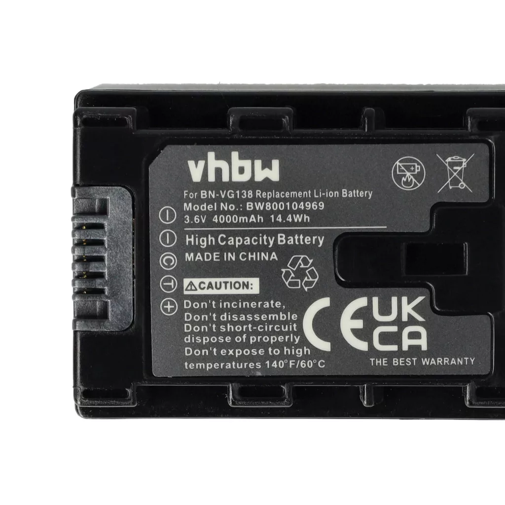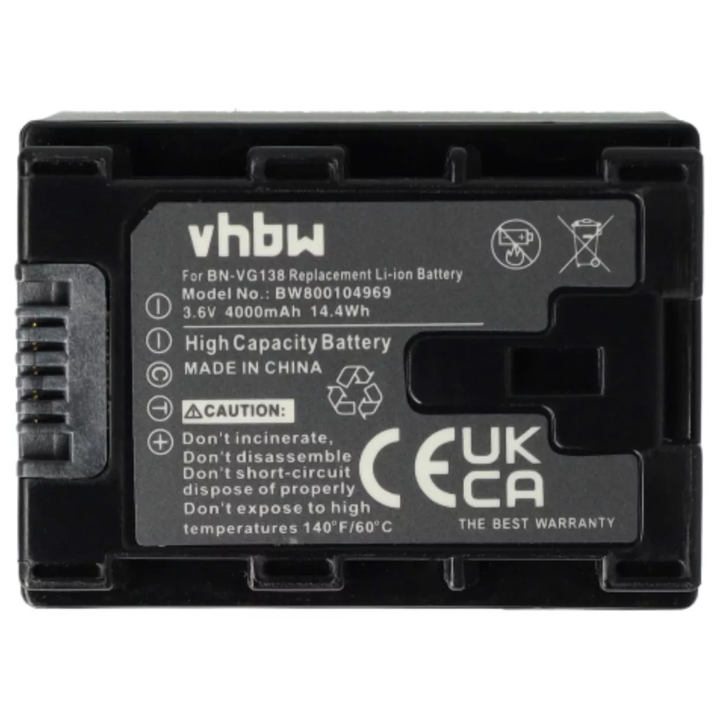 Kompatible Akkus, die neues Leben in Ihre JVC Videokamera und Camcorder bringen. Hochwertige Ersatzteile mit optimalem Preis-Leistungs-Verhältnis. Zuverlässiger Betrieb und vollständige Kompatibilität mit Ihrem Videorecorder. Integrierter Chip, der die verbleibende Akkulaufzeit anzeigt. Präzise Fertigung für die perfekte Passform in Ihr Gerät. CE- und RoHs-Zertifizierung - erfüllt alle Richtlinien zur Betriebssicherheit. Kein Memory-Effekt. Hochwertige Li-Ion-Zellen für optimale Geräteleistung. Lithium-Ionen-Akkus haben eine hohe Energiedichte und gehören zu den leistungsstärksten Akkus. Im Vergleich zu NiMH-Akkus haben sie eine niedrige Selbstentladungsrate und sind nicht vom Memory-Effekt betroffen. Sie benötigen keine regelmäßige Entladung, wodurch sie einen geringen Wartungsaufwand haben. Bei richtiger Lagerung sind diese wiederaufladbaren Akkus langlebig, robust und haben eine hohe Ladezyklenanzahl. Li-Ion-Akkus werden in verschiedenen tragbaren Geräten verwendet, die einen hohen Energiebedarf haben, wie z.B. Smartphones, Notebooks, Kameras und Elektrowerkzeuge. Diese Akkus können auch in funkferngesteuerten Modellen und Telekommunikationsanwendungen eingesetzt werden. Kompatible Geräte: JVC GZ-E10, JVC GZ-E100, JVC GZ-E200, JVC GZ-E200AU, JVC GZ-E200BU, JVC GZ-E200RU, JVC GZ-E205, JVC GZ-E205BEU, JVC GZ-E209, JVC GZ-E209BEU, JVC GZ-E220, JVC GZ-E245, JVC GZ-E300, JVC GZ-E300AU, JVC GZ-E300BU, JVC GZ-E300WU, JVC GZ-E306, JVC GZ-E505, JVC GZ-E505BU, JVC GZ-E565, JVC GZ-EX210, JVC GZ-EX210BU, JVC GZ-EX215, JVC GZ-EX250, JVC GZ-EX250BUS, JVC GZ-EX265, JVC GZ-EX275, JVC GZ-EX310, JVC GZ-EX310AU, JVC GZ-EX310BU, JVC GZ-EX310WU, JVC GZ-EX355, JVC GZ-EX515, JVC GZ-EX555, JVC GZ-EX555BU, JVC GZ-EX575, JVC GZ-G3, JVC GZ-GX1, JVC GZ-GX1BU, JVC GZ-GX8, JVC GZ-HD500, JVC GZ-HD500BU, JVC GZ-HD500BUS, JVC GZ-HD500SEK, JVC GZ-HD500SEU, JVC GZ-HD500U, JVC GZ-HD510, JVC GZ-HD520, JVC GZ-HD550, JVC GZ-HD620, JVC GZ-HD620-B, JVC GZ-HD620-R, JVC GZ-HD620-S, JVC GZ-HD620BAH, JVC GZ-HD620BEU, JVC GZ-HD620BU, JVC GZ-HD620BUS, JVC GZ-HD620U, JVC GZ-HD750, JVC GZ-HD760, JVC GZ-HM30, JVC GZ-HM30U, JVC GZ-HM35, JVC GZ-HM35U, JVC GZ-HM40, JVC GZ-HM50, JVC GZ-HM50U, JVC GZ-HM65, JVC GZ-HM300, JVC GZ-HM300BU, JVC GZ-HM300BUS, JVC GZ-HM300SEK, JVC GZ-HM300SEU, JVC GZ-HM300U, JVC GZ-HM310, JVC GZ-HM320, JVC GZ-HM320BUS, JVC GZ-HM320U, JVC GZ-HM330, JVC GZ-HM330BEK, JVC GZ-HM330BEU, JVC GZ-HM330SEU, JVC GZ-HM334, JVC GZ-HM334BEU, JVC GZ-HM335, JVC GZ-HM335BEU, JVC GZ-HM340, JVC GZ-HM350, JVC GZ-HM430, JVC GZ-HM435, JVC GZ-HM440, JVC GZ-HM445, JVC GZ-HM446, JVC GZ-HM450, JVC GZ-HM550, JVC GZ-HM550BEK, JVC GZ-HM550BEU, JVC GZ-HM550BU, JVC GZ-HM550BUS, JVC GZ-HM550U, JVC GZ-HM570, JVC GZ-HM650, JVC GZ-HM650BU, JVC GZ-HM655, JVC GZ-HM670, JVC GZ-HM690, JVC GZ-HM845, JVC GZ-HM855, JVC GZ-HM860, JVC GZ-HM870, JVC GZ-HM880, JVC GZ-HM890, JVC GZ-HM960, JVC GZ-HM970, JVC GZ-HM980, JVC GZ-HM990, JVC GZ-MG680, JVC GZ-MG750, JVC GZ-MG750AU, JVC GZ-MG750AUC, JVC GZ-MG750BEK, JVC GZ-MG750BEU, JVC GZ-MG750BU, JVC GZ-MG750BUC, JVC GZ-MG750BUS, JVC GZ-MG750RU, JVC GZ-MG750RUC, JVC GZ-MG750U, JVC GZ-MG760, JVC GZ-MG980, JVC GZ-MG980-A, JVC GZ-MG980-R, JVC GZ-MG980-S, JVC GZ-MS110, JVC GZ-MS110BEK, JVC GZ-MS110BEU, JVC GZ-MS110BU, JVC GZ-MS110BUC, JVC GZ-MS110BUS, JVC GZ-MS110U, JVC GZ-MS118, JVC GZ-MS150, JVC GZ-MS210, JVC GZ-MS210AEK, JVC GZ-MS210AEU, JVC GZ-MS210BEU, JVC GZ-MS210BUC, JVC GZ-MS210SEK, JVC GZ-MS210SEU, JVC GZ-MS210U, JVC GZ-MS215, JVC GZ-MS215BEU, JVC GZ-MS215PEU, JVC GZ-MS215SEU, JVC GZ-MS216, JVC GZ-MS216AEU, JVC GZ-MS216BEU, JVC GZ-MS216REU, JVC GZ-MS216SEU, JVC GZ-MS230, JVC GZ-MS230AU, JVC GZ-MS230AUC, JVC GZ-MS230AUS, JVC GZ-MS230BEU, JVC GZ-MS230BU, JVC GZ-MS230BUC, JVC GZ-MS230BUS, JVC GZ-MS230RU, JVC GZ-MS230RUC, JVC GZ-MS230RUS, JVC GZ-MS230U, JVC GZ-MS240, JVC GZ-MS240AUS, JVC GZ-MS250, JVC GZ-MS250BEK, JVC GZ-MS250BEU, JVC GZ-MS250BU, JVC GZ-MS250BUC, JVC GZ-MS250BUS, JVC GZ-MS250U, JVC GZHD520GZ-MG980-S, JVC GZ-MS110, JVC GZ-MS110BEK, JVC GZ-MS110BEU, JVC GZ-MS110BU, JVC GZ-MS110BUC, JVC GZ-MS110BUS, JVC GZ-MS110U, JVC GZ-MS118, JVC GZ-MS150, JVC GZ-MS210, JVC GZ-MS210AEK, JVC GZ-MS210AEU, JVC GZ-MS210BEU, JVC GZ-MS210BUC, JVC GZ-MS210SEK, JVC GZ-MS210SEU, JVC GZ-MS210U, JVC GZ-MS215, JVC GZ-MS215BEU, JVC GZ-MS215PEU, JVC GZ-MS215SEU, JVC GZ-MS216, JVC GZ-MS216AEU, JVC GZ-MS216BEU, JVC GZ-MS216REU, JVC GZ-MS216SEU, JVC GZ-MS230, JVC GZ-MS230AU, JVC GZ-MS230AUC, JVC GZ-MS230AUS, JVC GZ-MS230BEU, JVC GZ-MS230BU, JVC GZ-MS230BUC, JVC GZ-MS230BUS, JVC GZ-MS230RU, JVC GZ-MS230RUC, JVC GZ-MS230RUS, JVC GZ-MS230U, JVC GZ-MS240, JVC GZ-MS240AUS, JVC GZ-MS250, JVC GZ-MS250BEK, JVC GZ-MS250BEU, JVC GZ-MS250BU, JVC GZ-MS250BUC, JVC GZ-MS250BUS, JVC GZ-MS250U, JVC GZHD520, JVC BN-VG138, JVC BN-VG138AC, JVC BN-VG138E, JVC BN-VG138SU, JVC BN-VG138U, JVC BN-VG138US