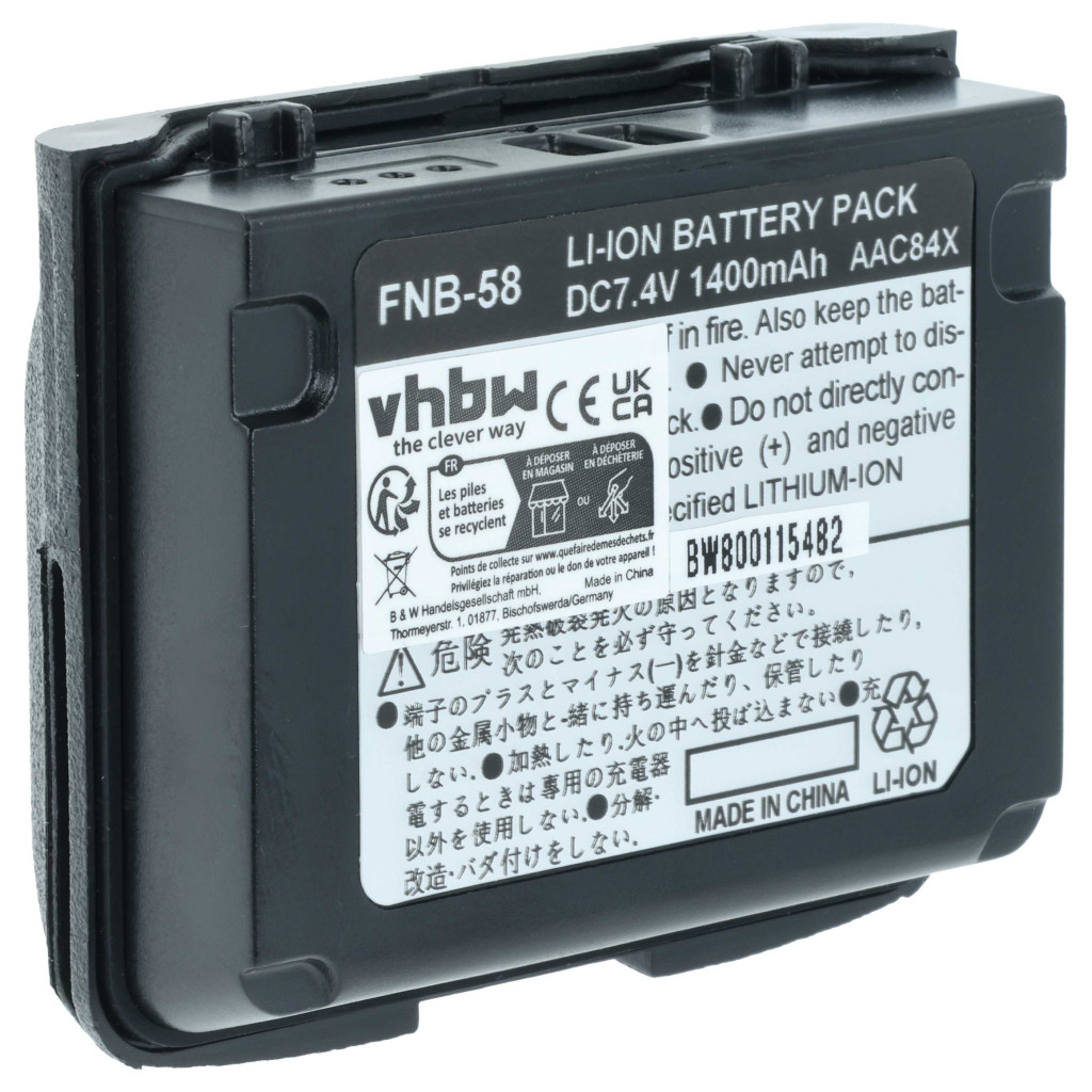 Kompatible Geräte: Horizon HX460, Horizon HX460S, Horizon HX470S, Horizon HX471, Horizon HX471S, Horizon HX471SB, Horizon HX471SS, Vertex Yaesu VX-5E, Vertex Yaesu VX-5R, Vertex Yaesu VX-5RS, Vertex Yaesu VX-6, Vertex Yaesu VX-6E, Vertex Yaesu VX-6R, Vertex Yaesu VX-7E, Vertex Yaesu VX-7R, Vertex Yaesu VX-7RB, Vertex Yaesu VXA-700, Vertex Yaesu VXA-710, Yaesu Vertex FNB-58, Yaesu Vertex FNB-58Li, Yaesu Vertex FNB-80, Yaesu Vertex FNB-80Li