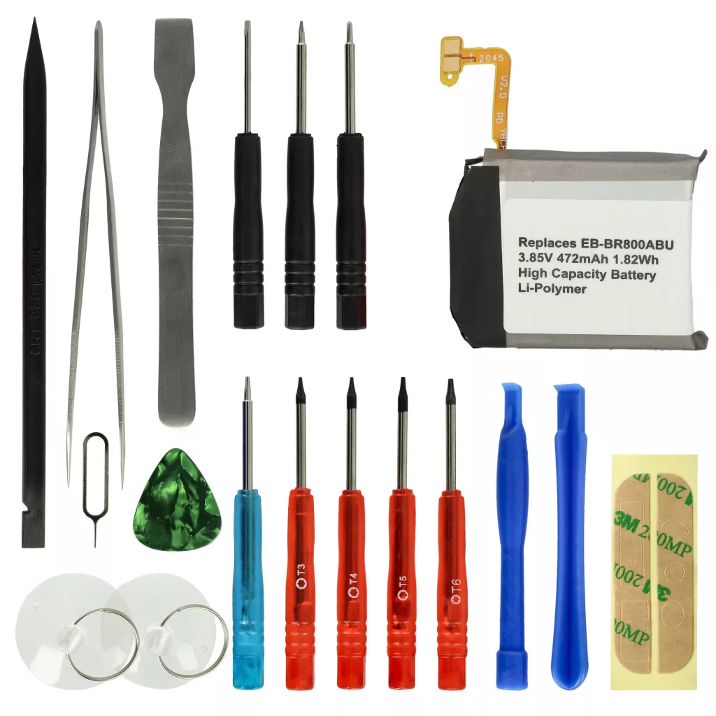 Kompatibler Akku, der neues Leben in Ihre Samsung Smartwatch bringt. Hochwertiges Ersatzteil mit optimalem Preis-Leistungs-Verhältnis. Zuverlässiger Betrieb und vollständige Kompatibilität mit HR-Monitoren und Fitnessarmbändern. Das für den Akkutausch benötigte Werkzeugset ist im Paket enthalten. Präzise Fertigung für eine perfekte Passform. CE- und RoHs-Zertifizierung - erfüllt alle Richtlinien zur Betriebssicherheit. Kein Memory-Effekt. Hochwertige Li-Polymer-Zellen für optimale Geräteleistung. Lithium-Ionen-Polymer-Akkus (häufig abgekürzt als LiPo, Li-Poly, Lithium-Poly und LIP) gehören zur Li-Ion-Familie. Sie haben eine niedrige Selbstentladungsrate, sind langlebig und haben eine hohe Kapazität. Im Vergleich zu anderen Li-Ion-Akkus haben Lithium-Polymer-Akkus eine etwas niedrigere Energiespeicherkapazität, sind jedoch widerstandsfähiger gegen Überladung. Die polymerbasierten Elektrolyte ermöglichen es, dass diese leichten Akkus in vielen Formen und Designs hergestellt werden, was sie sehr vielseitig macht. LiPo-Akkus werden häufig in Elektrofahrzeugen, ferngesteuerten elektrischen Modellen, Smartphones und Notebooks verwendet. Kompatible Geräte: Samsung Galaxy Watch 46mm, Samsung SM-R800, Samsung SM-R805