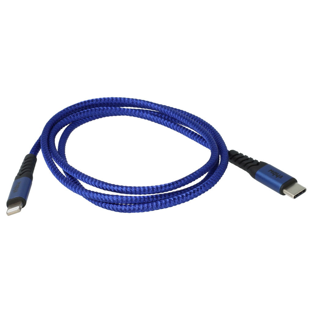 USB C-ről Lightning kábel Apple okostelefonokhoz és tabletekhez. Szín: fekete, kék. Gyors adatátvitel és egyszerű töltés.