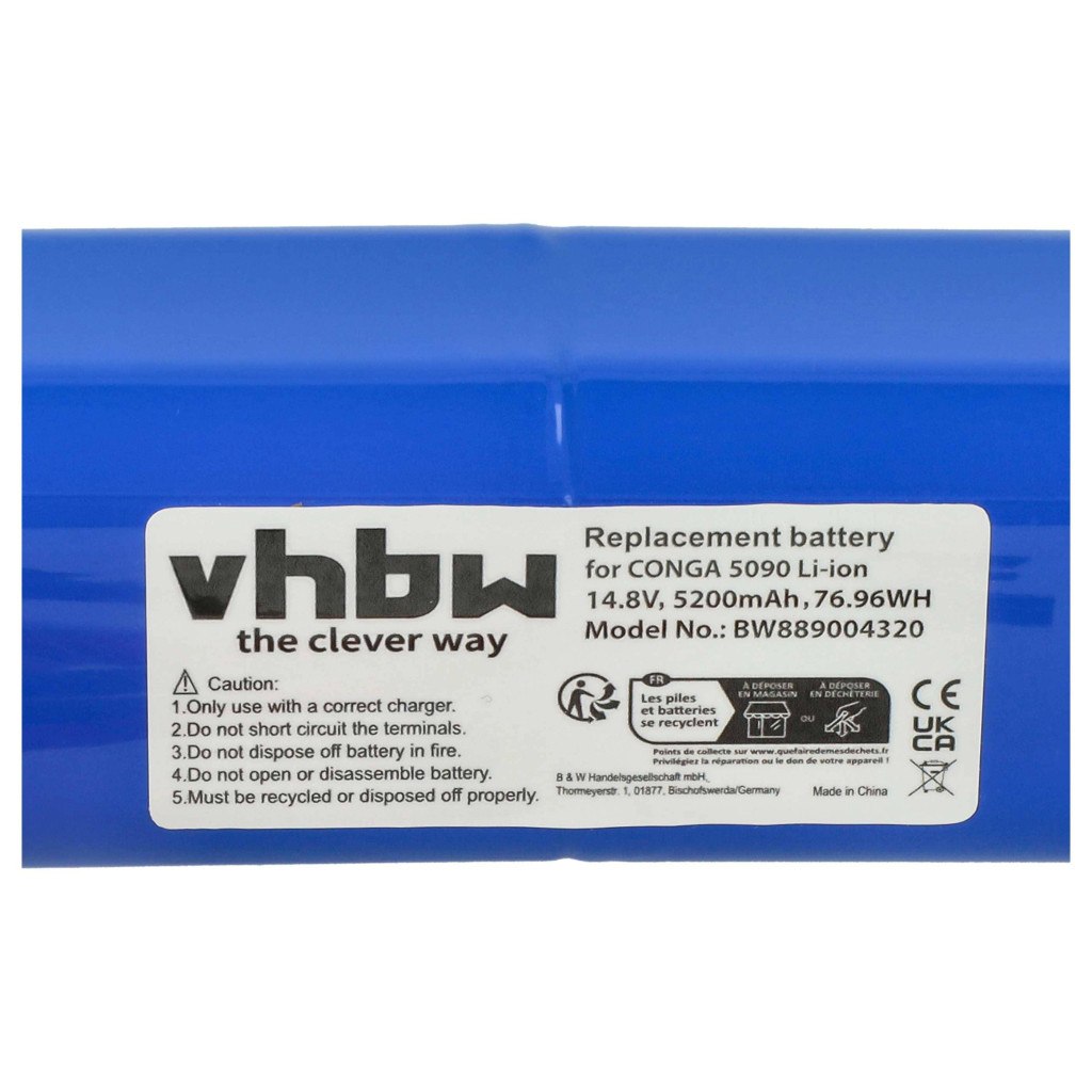Kompatibler Akku, der neues Leben in Ihr Cecotec Reinigungsgerät bringt. Hochwertiges Ersatzteil mit optimalem Preis-Leistungs-Verhältnis. Zuverlässiger Betrieb und vollständige Kompatibilität mit Ihrem Saugroboter. Präzise Fertigung für eine perfekte Passform. CE- und RoHs-Zertifikat - erfüllt alle Richtlinien zur Betriebssicherheit. Kein Memory-Effekt. Ist der Akku auch kompatibel, wenn die Kapazität anders ist? Ja! Wenn die anderen technischen Spezifikationen wie Spannung und Anschlüsse stimmen, ist der Akku kompatibel. Die Akkukapazität wird in Milliamperestunden (mAh) gemessen. Wenn die Kapazität des Ersatzakkus höher ist als die des Originals, bietet er eine längere Betriebszeit. Wenn die Kapazität nur geringfügig höher oder niedriger ist, hat das keinen signifikanten Einfluss auf die Betriebszeit. Sie können problemlos Akkus mit unterschiedlichen Kapazitäten verwenden. Hochwertige Li-Ion-Zellen für optimale Geräteleistung. Lithium-Ionen-Akkus haben eine hohe Energiedichte und gehören zu den leistungsstärksten Akkus. Im Vergleich zu NiMH-Akkus haben sie eine niedrige Selbstentladungsrate und leiden nicht unter dem Memory-Effekt. Sie benötigen keine regelmäßige Entladung, wodurch sie wartungsarm sind. Bei richtiger Lagerung haben diese wiederaufladbaren Akkus eine lange Lebensdauer, sind langlebig und haben eine hohe Anzahl an Ladezyklen. Li-Ion-Akkus werden in verschiedenen tragbaren Geräten verwendet, die einen hohen Energiebedarf haben, wie z.B. Smartphones, Notebooks, Kameras und Elektrowerkzeuge. Diese Akkus können auch in funkferngesteuerten Modellen und Telekommunikationsanwendungen eingesetzt werden. Zur Produktsicherheit: Dieses Produkt wurde gemäß den geltenden Vorschriften der EU hergestellt. Unter anderem erfüllt es die Anforderungen der Richtlinie 2011/65/EU (RoHS) und des CE-Zeichens. Die Herstellung erfolgt unter Einhaltung der relevanten Vorschriften zur Produktsicherheit, Umweltverträglichkeit und Qualitätssicherung. Kompatible Geräte: Cecotec Conga 5090, Cecotec Conga 5490, Cecotec Conga 6090, Cecotec Conga 7090