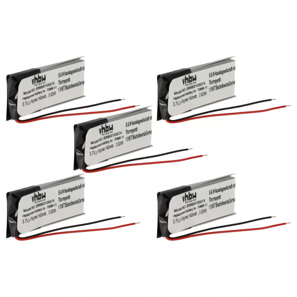 Kompatible Akkus, die neuen Leben in deine Sony-Ericsson, JBL, Plantronics, Jabra, Nokia Kopfhörer bringen. Hochwertige Ersatzteile mit optimalem Preis-Leistungs-Verhältnis. Zuverlässiger Betrieb und vollständige Kompatibilität mit deinem kabellosen Kopfhörer. Präzise Fertigung für eine perfekte Passform. CE- und RoHs-Zertifizierung - erfüllt alle Richtlinien zur Betriebssicherheit. Kein Memory-Effekt. Hochwertige Li-Polymer-Zellen für optimale Geräteleistung. Lithium-Ionen-Polymer-Akkus (häufig abgekürzt als LiPo, Li-poly, Lithium-Poly und LIP) gehören zur Li-Ion-Familie. Sie haben eine niedrige Selbstentladungsrate, sind langlebig und haben eine hohe Kapazität. Im Vergleich zu anderen Li-Ion-Akkus ist die Energieleistung von Lithium-Polymer-Akkus etwas niedriger, aber sie sind widerstandsfähiger gegen Überladung. Die polymerbasierten Elektrolyte ermöglichen es, dass diese leichten Akkus in vielen Formen und Designs hergestellt werden, was sie äußerst vielseitig macht. LiPo-Akkus werden häufig in Elektrofahrzeugen, ferngesteuerten elektrischen Modellen, Smartphones und Notebooks verwendet. Kompatible Geräte: JBL E25BT, JBL T110BT, Jabra BT250, Jabra BT250V, Jabra BT500V, Jabra BT2010, Jabra BT2020, Jabra BT4010, Jabra JX10, Jabra VH110, Nokia BH-607, Nokia BH-900, Nokia HS-36W, Plantronics Explorer 320, Plantronics Explorer 330, Plantronics Explorer 340, Plantronics Explorer 350, Plantronics Explorer 360, Plantronics Explorer 370, Plantronics Explorer 390, Plantronics Explorer 395, Sony-Ericsson HBH-608