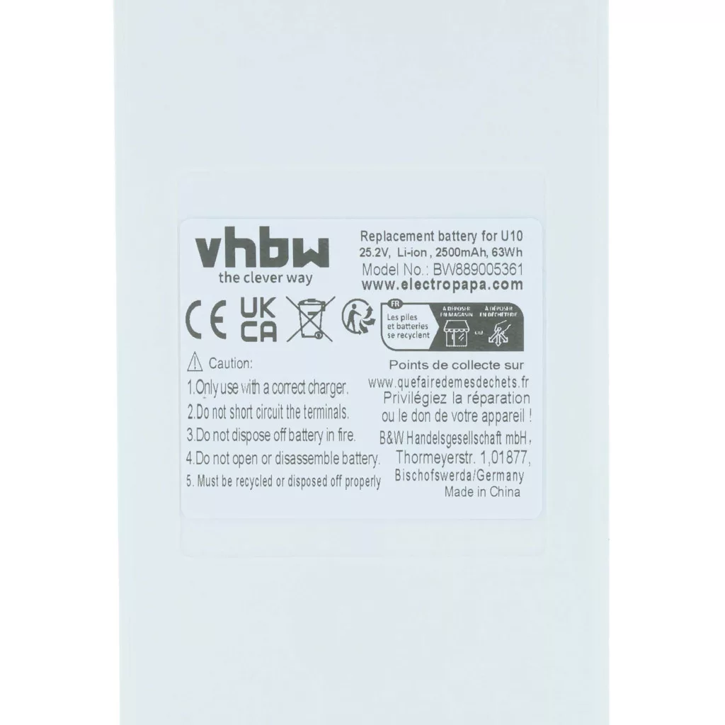 Kompatibler Akku, der neues Leben in Ihr Dreame Reinigungsgerät bringt. Hochwertiges Ersatzteil mit optimalem Preis-Leistungs-Verhältnis. Zuverlässiger Betrieb und vollständige Kompatibilität mit Ihrem Staubsauger. Präzise gefertigt, um perfekt in Ihr Gerät zu passen. CE- und RoHs-Zertifizierung - erfüllt alle Richtlinien zur Betriebssicherheit. Kein Memory-Effekt. Ist der Akku auch kompatibel, wenn er eine andere Kapazität hat? Ja! Wenn die anderen technischen Spezifikationen, wie Spannung und Anschlüsse, stimmen, ist der Akku kompatibel. Die Kapazität des Akkus wird in Milliamperestunden (mAh) gemessen. Wenn der Ersatzakku eine höhere Kapazität hat als das Original, bietet er eine längere Betriebszeit. Wenn die Kapazität nur geringfügig höher oder niedriger ist, hat das keinen signifikanten Einfluss auf die Betriebszeit. Sie können Akkus mit unterschiedlicher Kapazität problemlos verwenden. Hochwertige Li-Ion-Zellen für optimale Geräteleistung. Lithium-Ionen-Akkus haben eine hohe Energiedichte und gehören zu den leistungsstärksten Akkus. Im Vergleich zu NiMH-Akkus haben sie eine niedrige Selbstentladungsrate und sind nicht vom Memory-Effekt betroffen. Sie benötigen keine regelmäßige Entladung, wodurch sie einen geringen Wartungsaufwand haben. Bei richtiger Lagerung sind diese wiederaufladbaren Akkus langlebig, robust und haben eine hohe Anzahl an Ladezyklen. Li-Ion-Akkus werden in verschiedenen tragbaren Geräten verwendet, die einen hohen Energiebedarf haben, wie Smartphones, Notebooks, Kameras und Elektrowerkzeuge. Diese Akkus können auch in funkferngesteuerten Modellen und Telekommunikationsanwendungen eingesetzt werden. In Bezug auf die Produktsicherheit: Dieses Produkt wurde gemäß den geltenden Vorschriften der EU hergestellt. Unter anderem erfüllt es die Anforderungen der Richtlinie 2011/65/EU (RoHS) und der CE-Kennzeichnung. Die Herstellung erfolgt unter Einhaltung der relevanten Vorschriften zur Produktsicherheit, Umweltverträglichkeit und Qualitätssicherung. Kompatible Geräte: Dreame U10, Dreame U20