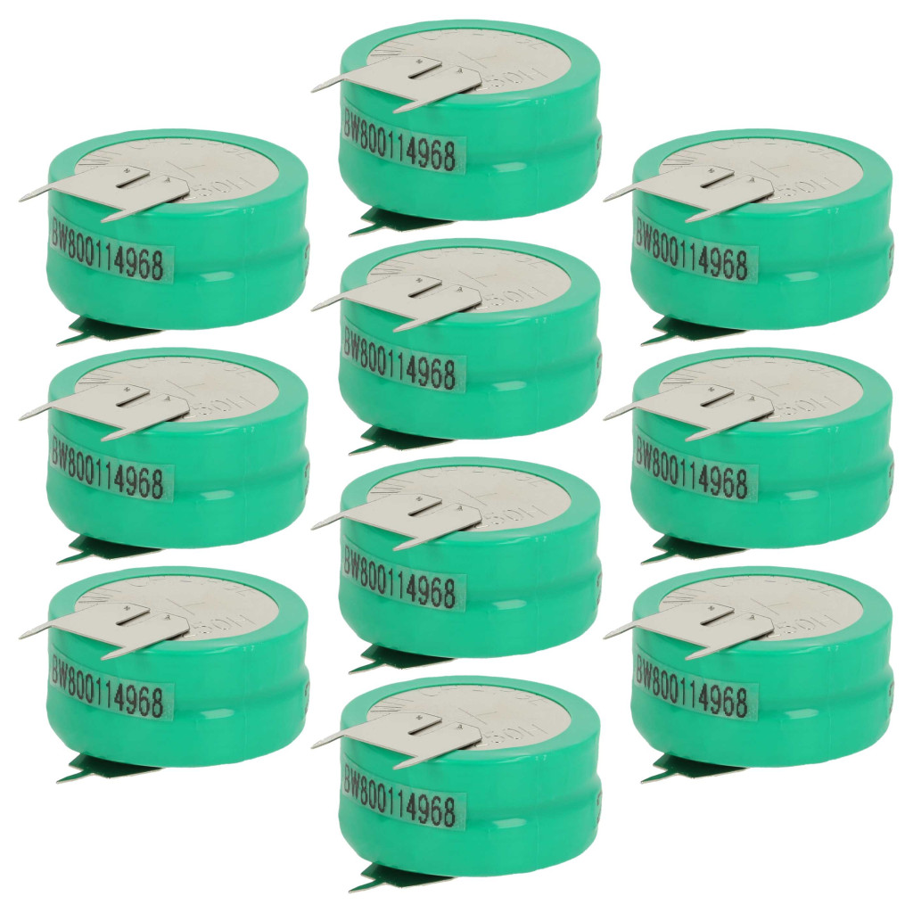 Wiederaufladbare Knopfzellen-Akkus für verschiedene Geräte wie Taschenrechner, Uhren usw. Vollständige Funktionalität und Kompatibilität mit Ihrem Gerät. Zuverlässige Leistung in verschiedenen elektronischen Geräten. Präzise Fertigung für die perfekte Passform in Ihrem Gerät. CE- und RoHS-Zertifizierung - erfüllt alle Richtlinien zur Betriebssicherheit. Zelltyp: 2/V250H. Hochwertige NiMH-Zellen für optimale Geräteleistung. Nickel-Metallhydrid-Akkus sind ähnlich wie Nickel-Cadmium-Zellen, haben jedoch bei gleicher Spannung eine höhere Energiedichte (ca. das Doppelte). Dank ihres niedrigen Innenwiderstands können NiMH-Akkus auch in energieintensiven Geräten eingesetzt werden, jedoch zu geringen Kosten, wie z.B. kleinen LED-Lampen, Spielzeugen, Audio- und Fotoequipment, Telefonen, elektrischen Zahnbürsten, Rasierern, Werkzeugmaschinen und ferngesteuerten elektrischen Modellen.