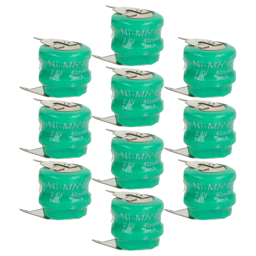 Wiederaufladbare Knopfzellen-Akkus für verschiedene Geräte wie Taschenrechner, Uhren usw. Vollständige Funktionalität und Kompatibilität mit Ihrem Gerät. Zuverlässige Leistung in verschiedenen Elektronikgeräten. Präzise Fertigung für die perfekte Passform in Ihr Gerät. CE- und RoHS-Zertifizierung - erfüllt alle Richtlinien zur Betriebssicherheit. Zelltyp: V40H. Hochwertige NiMH-Zellen für optimale Geräteleistung. Nickel-Metallhydrid-Akkus sind ähnlich wie Nickel-Cadmium-Zellen, haben jedoch eine höhere Energiedichte bei gleicher Spannung (ca. das Doppelte). Dank ihres niedrigen Innenwiderstands können NiMH-Akkus auch in Geräten mit hohem Energieverbrauch eingesetzt werden, jedoch zu geringen Kosten, wie z.B. bei kleinen LED-Lampen, Spielzeugen, Audio- und Fotoequipment, Telefonen, elektrischen Zahnbürsten, Rasierern, Werkzeugmaschinen und ferngesteuerten elektrischen Modellen.
