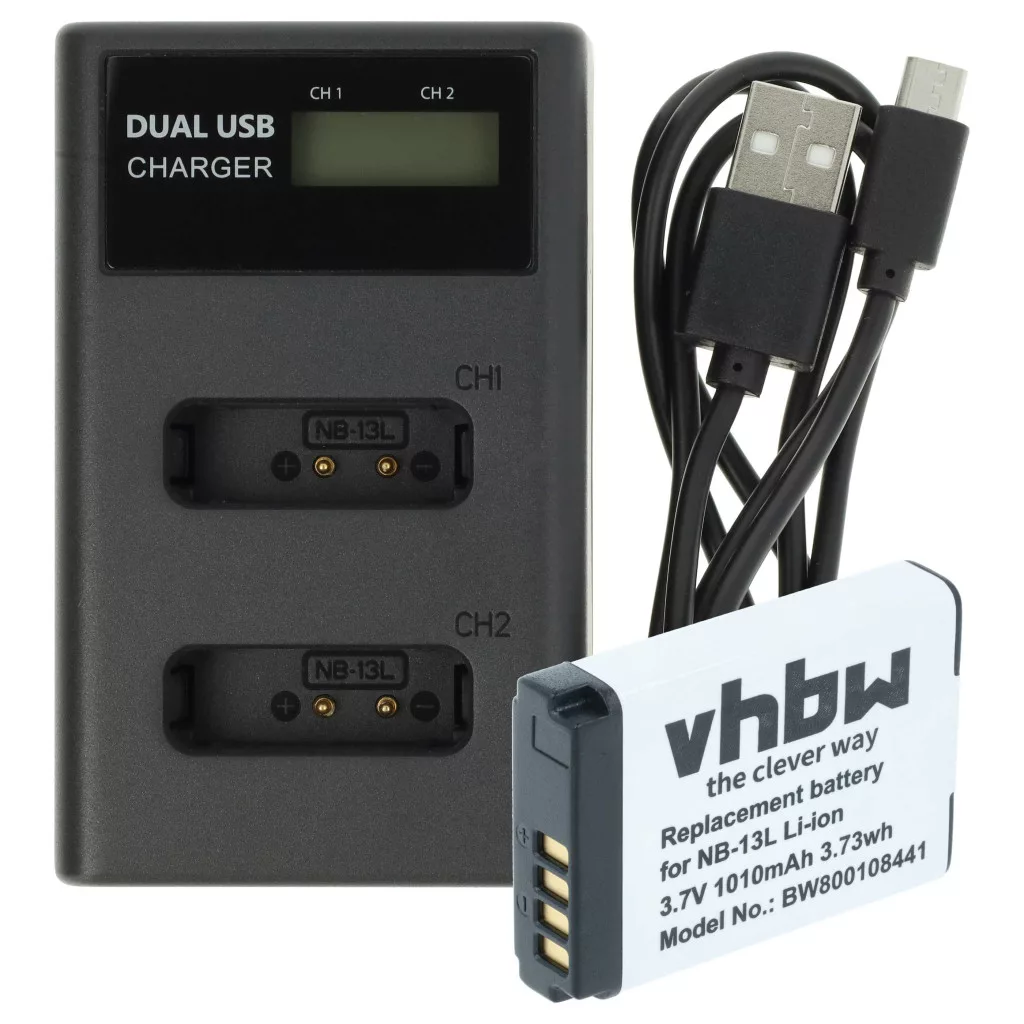 Akkumulator und Ladegerät für deine Kamera, das eine sichere und stabile Energieversorgung gewährleistet. Vollständige Funktionalität und Kompatibilität mit deiner Canon-Kamera, präzise gefertigt. Ersetzt den Canon NB-13L Akku. Das vollständige Ladegerät-Set besteht aus einem Akku und einem Netzadapter für deine Kamera. Mit diesem Set hast du alle notwendigen Werkzeuge, damit deine Kamera für die nächste Fotosession bereit ist. Das praktische Ladegerät-Set enthält einen Ersatzakku und ein passendes Ladegerät. Der Akku ist präzise für deine Kamera gefertigt, sodass er äußerst benutzerfreundlich ist. Du kannst den Akku jederzeit mit dem mitgelieferten Ladegerät aufladen. Die passgenauen Anschlüsse des Ladegeräts halten den Akku fest. Leere oder wiederaufladbare Akkus gehören der Vergangenheit an! Der Lieferumfang des Sets: 1x Akku. Akkutyp: Li-Ion - kein Memory-Effekt. Kapazität: 1010 mAh. Spannung: 3,7 V. Energie: 3,73 Wh. Anzahl der Zellen: 1. 1x Doppel-Ladegerät, das bis zu 2 Akkus zuverlässig und schnell auflädt. Eingang: 5 V / 2 A. Ausgang: DC 4,2 V / 2x 0,5 A / 1x 0,7 A. Anzahl der Akkuplätze: 2. Mit Ladeüberwachungsanzeige. Anschluss: wahlweise USB Type-C oder Micro USB. Farbe: schwarz. Kabellänge: ca. 80 cm. Anschlüsse (Ladegerät): 1x Micro USB-Port, 1x USB C-Port. Anschlüsse (Kabel): USB Type A Stecker. Abmessungen: 8,4 x 4,8 x 3,2 cm. Gewicht: 63 g. CE- und RoHS-Zertifizierung - erfüllt alle Richtlinien zur Betriebssicherheit. Kompatible Geräte: Canon Legria Mini X, Canon PowerShot, Canon PowerShot G1 X Mark II, Canon PowerShot G1 X Mark III, Canon PowerShot G1X Mark III, Canon PowerShot G5 X, Canon PowerShot G5X Mark II, Canon PowerShot G5x, Canon PowerShot G7 X, Canon PowerShot G7 X Mark II, Canon PowerShot G7 X Mark III, Canon PowerShot G7x Mark II, Canon PowerShot G9 X, Canon PowerShot G9 X Mark II, Canon PowerShot G9X, Canon PowerShot G9X Mark II, Canon PowerShot SX620 HS, Canon PowerShot SX620HS, Canon PowerShot SX720 HS, Canon PowerShot SX720HS, Canon PowerShot SX730 HS, Canon PowerShot SX730HS, Canon PowerShot SX740 HS, Canon PowerShot SX740HS, Canon Vixia Mini X