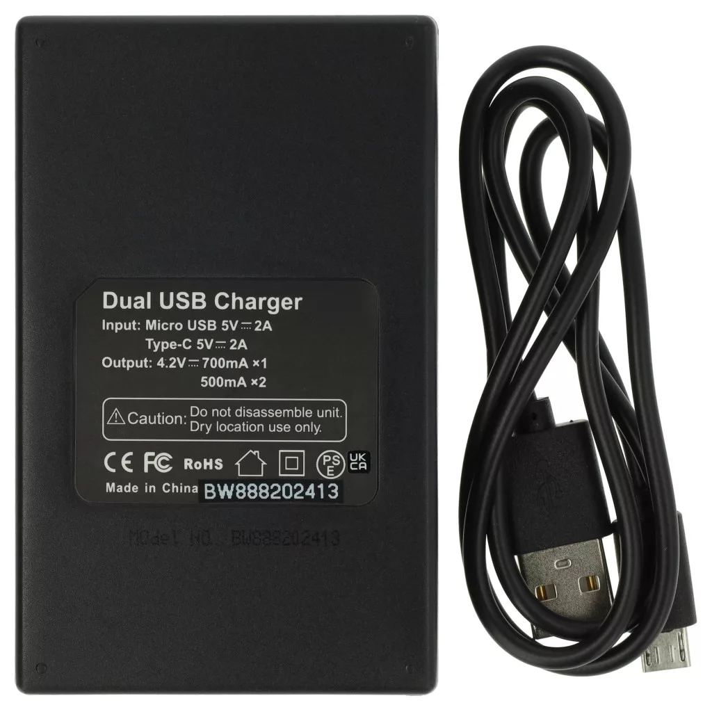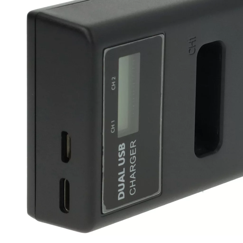 Lieferumfang: 1x Akku, 1x Doppel-Ladegerät