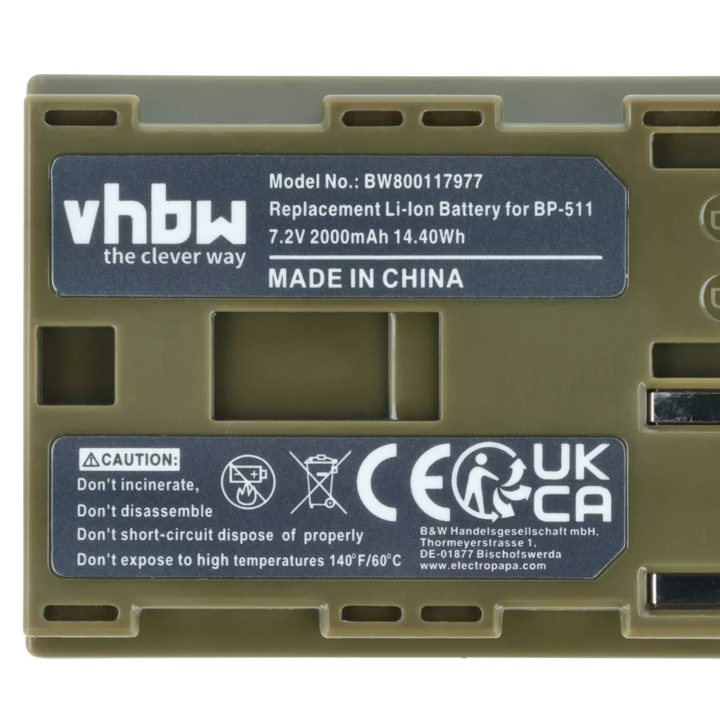 Kompatible Geräte: Canon DM-MV30, Canon DM-MV100X, Canon DM-MV100Xi, Canon DM-MV400, Canon DM-MV430, Canon DM-MV450, Canon DM-MVX1i, Canon EOS 5D, Canon EOS 10D, Canon EOS 20D, Canon EOS 20Da, Canon EOS 30D, Canon EOS 40D, Canon EOS 50D, Canon EOS 300D, Canon EOS D30, Canon EOS D60, Canon EOS Digital Rebel, Canon EOS Kiss Digital, Canon FV2, Canon FV10, Canon FV20, Canon FV30, Canon FV40, Canon FV50, Canon FV100, Canon FV200, Canon FV300, Canon FV400, Canon FVM1, Canon FVM10, Canon IXY DVM, Canon MV30i, Canon MV300, Canon MV300i, Canon MV400i, Canon MV430IMC, Canon MV430i, Canon MV450i, Canon MV500, Canon MV500i, Canon MV530i, Canon MV550i, Canon MV600, Canon MV600i, Canon MV630i, Canon MV650i, Canon MV700, Canon MV700i, Canon MV730i, Canon MV750i, Canon MVX2i, Canon MVX3i, Canon MVX100i, Canon MVX150i, Canon Optura 10, Canon Optura 20, Canon Optura 50MC, Canon Optura 100MC, Canon Optura 200MC, Canon Optura PI, Canon Optura Xi, Canon PV130, Canon PowerShot G1, Canon PowerShot G2, Canon PowerShot G3, Canon PowerShot G5, Canon PowerShot G6, Canon PowerShot Pro 1, Canon PowerShot Pro 90, Canon PowerShot Pro 90 IS, Canon ZR10, Canon ZR20, Canon ZR25, Canon ZR25MC, Canon ZR30, Canon ZR30MC, Canon ZR40, Canon ZR45MC, Canon ZR50MC, Canon ZR60, Canon ZR65MC, Canon ZR70MC, Canon ZR80, Canon ZR85, Canon ZR90, Canon BP-508, Canon BP-511, Canon BP-511A, Canon BP-512, Canon BP-514