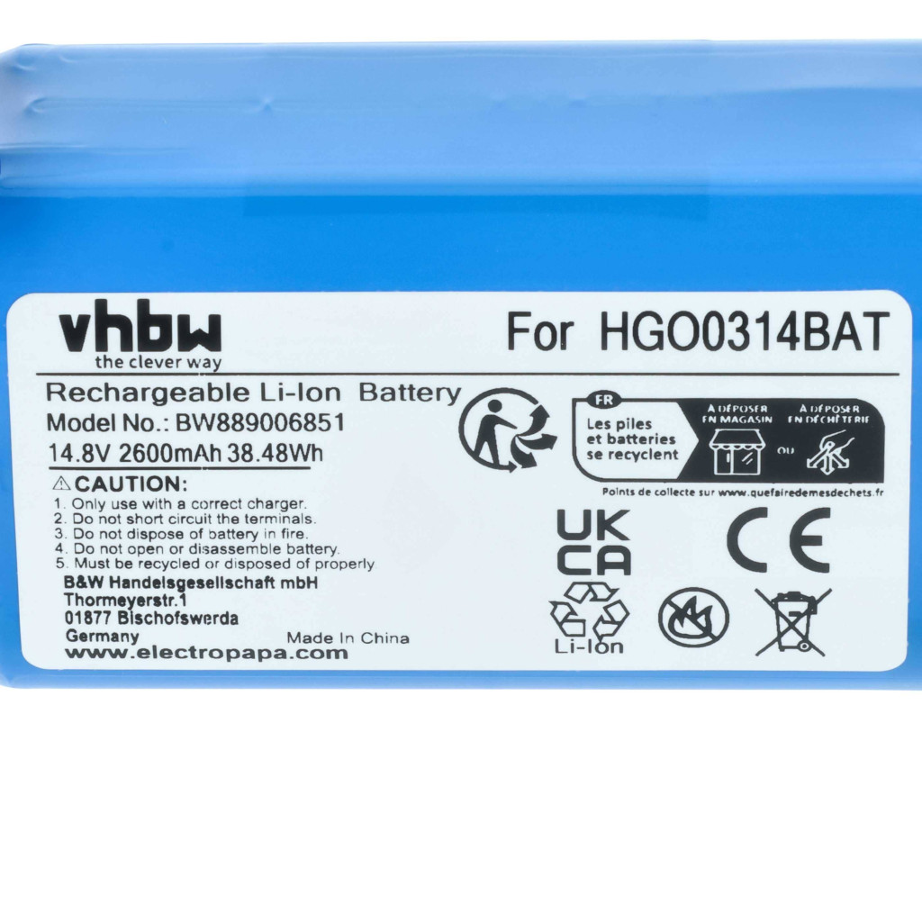 Kompatibler Akku, der neues Leben in Ihr Hoover / Easyhome Reinigungsgerät bringt. Hochwertiges Ersatzteil mit optimalem Preis-Leistungs-Verhältnis. Zuverlässiger Betrieb und vollständige Kompatibilität mit Ihrem Robotersauger. Präzise Fertigung für die perfekte Passform in Ihr Gerät. CE- und RoHs-Zertifikat - erfüllt alle Richtlinien zur Betriebssicherheit. Kein Memory-Effekt. Ist der Akku auch kompatibel, wenn die Kapazität anders ist? Ja! Wenn die anderen technischen Spezifikationen, wie Spannung und Anschlüsse, korrekt sind, ist der Akku kompatibel. Die Akkukapazität wird in Milliamperestunden (mAh) gemessen. Wenn der Ersatzakku eine höhere Kapazität als das Original hat, bietet er eine längere Betriebszeit. Wenn die Kapazität nur geringfügig höher oder niedriger ist als die des Originalakkus, hat dies keinen signifikanten Einfluss auf die Betriebszeit. Sie können problemlos Akkus mit unterschiedlichen Kapazitäten verwenden. Hochwertige Li-Ion-Zellen für optimale Geräteleistung. Lithium-Ionen-Akkus haben eine hohe Energiedichte und gehören zu den leistungsstärksten Akkus. Im Vergleich zu NiMH-Akkus haben sie eine niedrige Selbstentladungsrate und sind nicht vom Memory-Effekt betroffen. Sie erfordern keine regelmäßige Entladung, wodurch sie wartungsarm sind. Bei richtiger Lagerung sind diese wiederaufladbaren Akkus langlebig, robust und halten viele Ladezyklen aus. Li-Ion-Akkus werden in verschiedenen tragbaren Geräten verwendet, die einen hohen Energiebedarf haben, wie Smartphones, Notebooks, Kameras und Elektrowerkzeuge. Diese Akkus können auch in funkferngesteuerten Modellen und Telekommunikationsanwendungen eingesetzt werden. Zur Produktsicherheit: Dieses Produkt wurde gemäß den geltenden Vorschriften der EU hergestellt. Unter anderem erfüllt es die Anforderungen der Richtlinie 2011/65/EU (RoHS) und der CE-Kennzeichnung. Die Herstellung erfolgt unter Einhaltung der relevanten Vorschriften zur Produktsicherheit, Umweltverträglichkeit und Qualitätssicherung. Kompatible Geräte: Easyhome 800560, Hoover HG0320H0011, Hoover HGO31, Hoover HGO32, Hoover HGO33, Hoover HGO330HC011, Hoover HGO310011