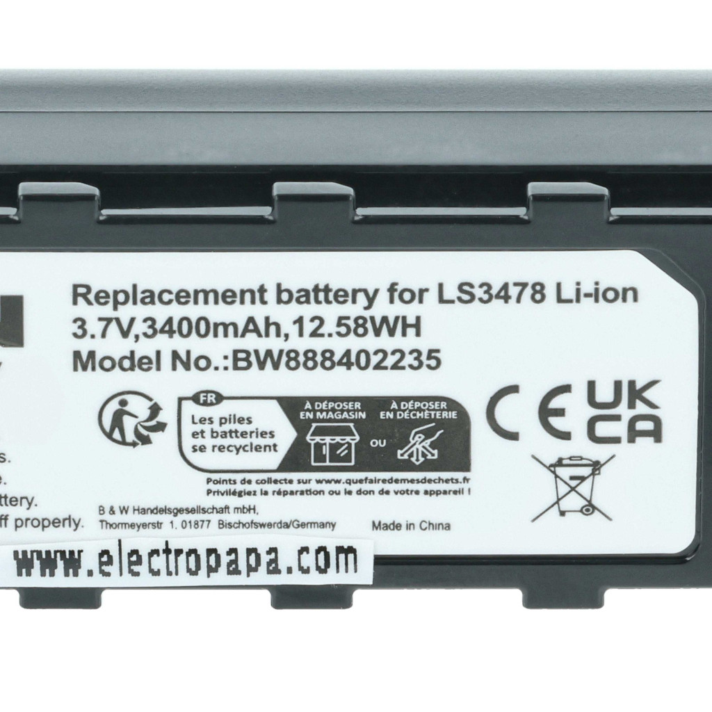 Kompatible Geräte: Honeywell 8800, Symbol DS3478, Symbol DS3578, Symbol DSS3478, Symbol LS3478, Symbol LS3478ER, Symbol LS3578, Symbol MT2000, Symbol NGIS, Symbol XS3478, Motorola 21-62606-01, Symbol 21-62606-01, Symbol BTRY-LS34IAB00-00