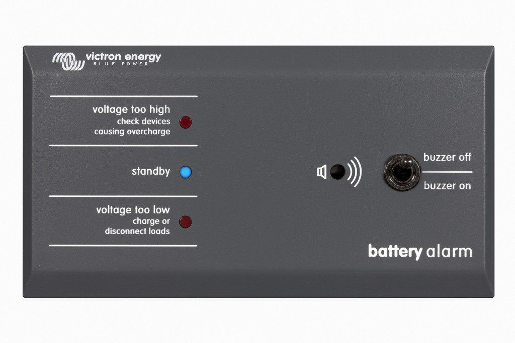 Der Battery Alarm GX ist ein kompaktes und kostengünstiges Alarmfeld, das Batteriebänke überwacht. Zu seinen Funktionen gehören akustische und visuelle Alarme sowie ein potenzialfreier Kontakt mit normalerweise offenen und normalerweise geschlossenen Kontakten. Die Alarmgrenzwerte und die Hysterese sind über DIP-Schalter programmierbar. Weitere Informationen finden Sie im Handbuch.