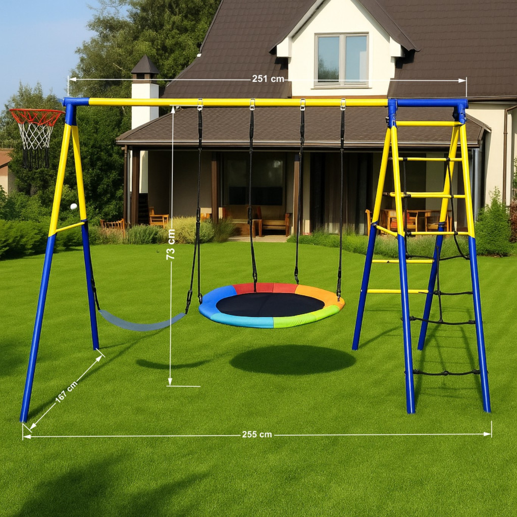 Diese vielseitige Gartenschaukel ist die perfekte Lösung, wenn Sie möchten, dass die Kinder viel Zeit mit fröhlichem und aktivem Spielen im Freien verbringen. Das Set enthält verschiedene Elemente, wie eine Leiter, klassische Schaukeln und ein Basketballkorb, sodass es viele Spielmöglichkeiten bietet, die die Kleinen stundenlang beschäftigen. Die Schaukel ist ideal für Geschwister oder Freundesgruppen und fördert das gemeinsame Spielen und die verbrachte Zeit miteinander.