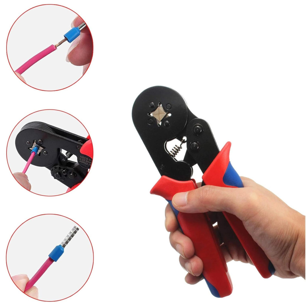 Das Design des Werkzeugs erfüllt die Anforderungen sowohl professioneller Elektriker als auch erfahrener Hobbyanwender. Aufgrund ihrer kompakten Größe passt sie leicht in einen Werkzeugkoffer oder eine Werkzeugtasche, sodass sie immer griffbereit ist, wenn es darum geht, Kabel, Klemmen oder Stecker schnell und zuverlässig zu crimpen.