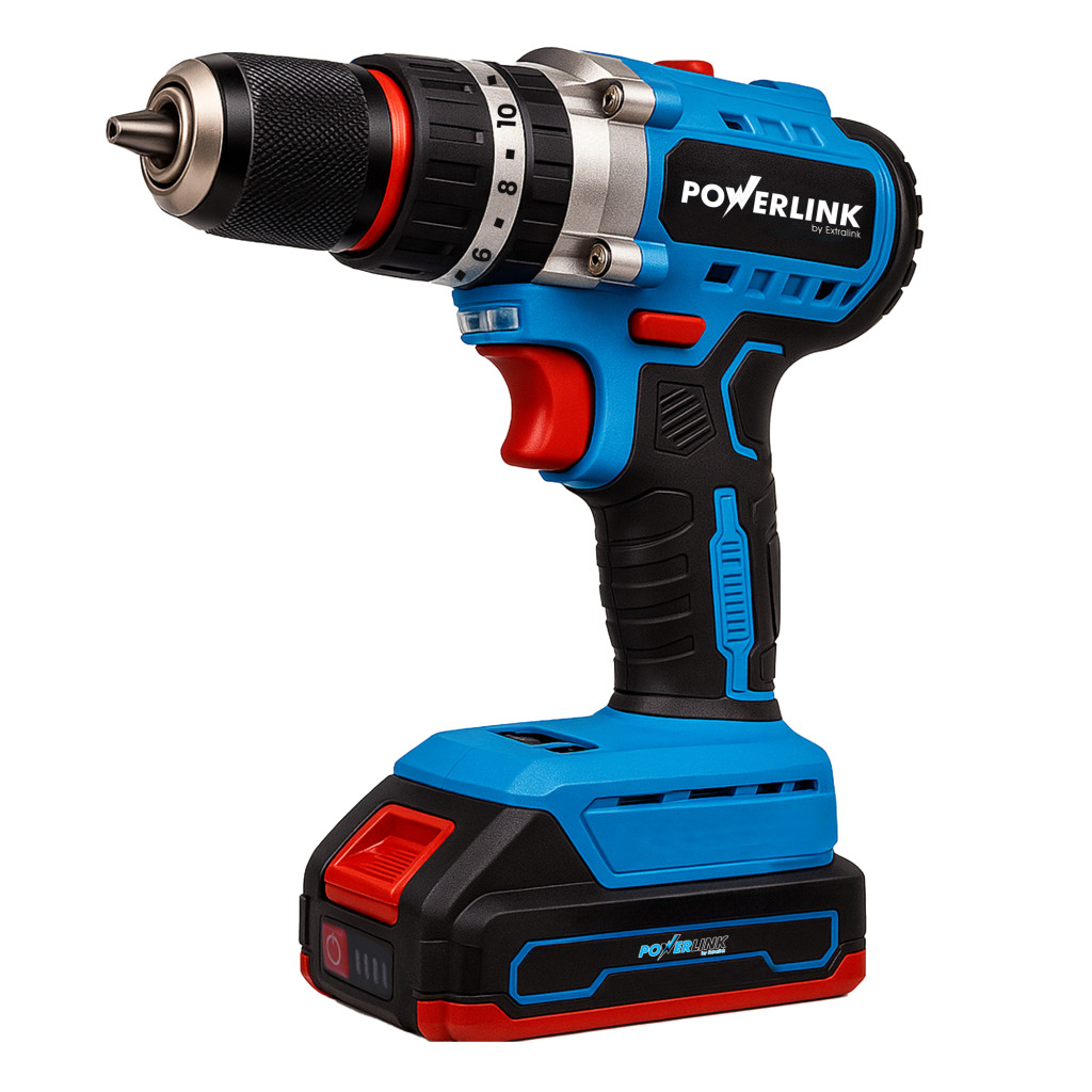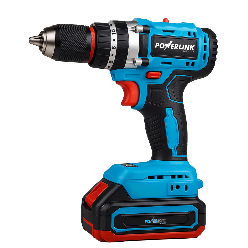 Suchst du ein zuverlässiges Werkzeug, das jede Reparatur erledigen kann? Der Powerlink ist ein kabelloser Bohrer/Schrauber, der Kraft, Präzision und Mobilität vereint. Mit einem 50 Nm Drehmoment kannst du mühelos in Holz, Metall und sogar Beton bohren. Ideal für Heimwerker, die ein einziges, vielseitiges Werkzeug für alle Aufgaben wünschen. Die Schlagbohrfunktion, die zwei wiederaufladbaren Akkus und das ergonomische Design machen ihn zum perfekten Werkzeug für den täglichen Gebrauch. Mit dem Powerlink wird jede Arbeit schneller und einfacher.