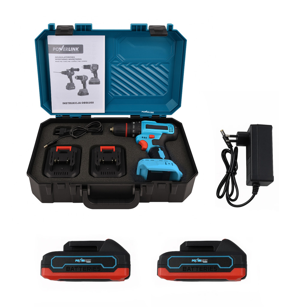 Im Set sind zwei leistungsstarke Akkus enthalten, mit denen du unterbrechungsfrei arbeiten kannst. Wenn einer leer ist, tauschst du ihn einfach gegen den anderen aus und kannst die Arbeit fortsetzen – ohne unnötige Unterbrechungen. Dies ist besonders vorteilhaft bei größeren Arbeiten, bei denen Zeit und Kontinuität wichtig sind. Das Powerlink Akku-Bohrer/Schrauber-Set bietet vollständige Unabhängigkeit von der Stromquelle und sorgt für mehr Komfort. Dies ist eine Lösung, die die Arbeit wirklich erleichtert.