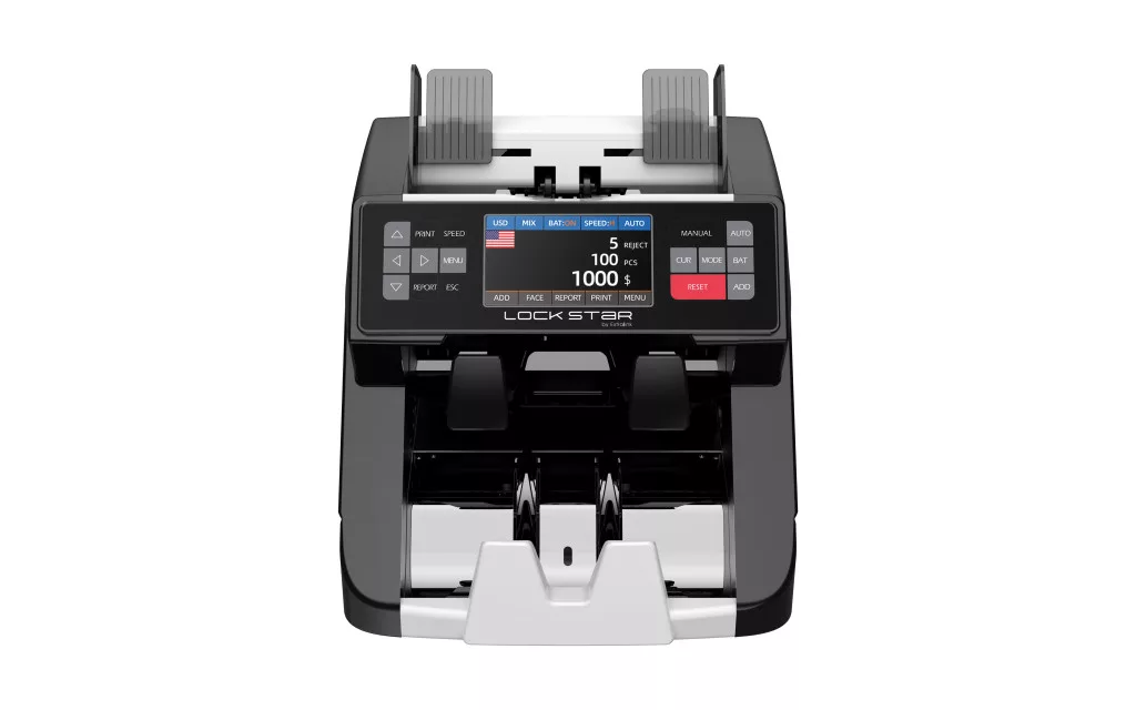 Der Zähler ist mit einem großen Bedienfeld ausgestattet, um eine einfache und bequeme Nutzung zu gewährleisten. Durch die automatische Trennung von falschen oder verschiedenen Nennwerten bietet das Gerät vollständige Kontrolle über den Zählprozess. Der verstellbare, von vorne ladbare Geldscheinspender ermöglicht es, mehrere Geldscheine in den Spender zu legen, was die Effizienz der Arbeit erheblich steigert.