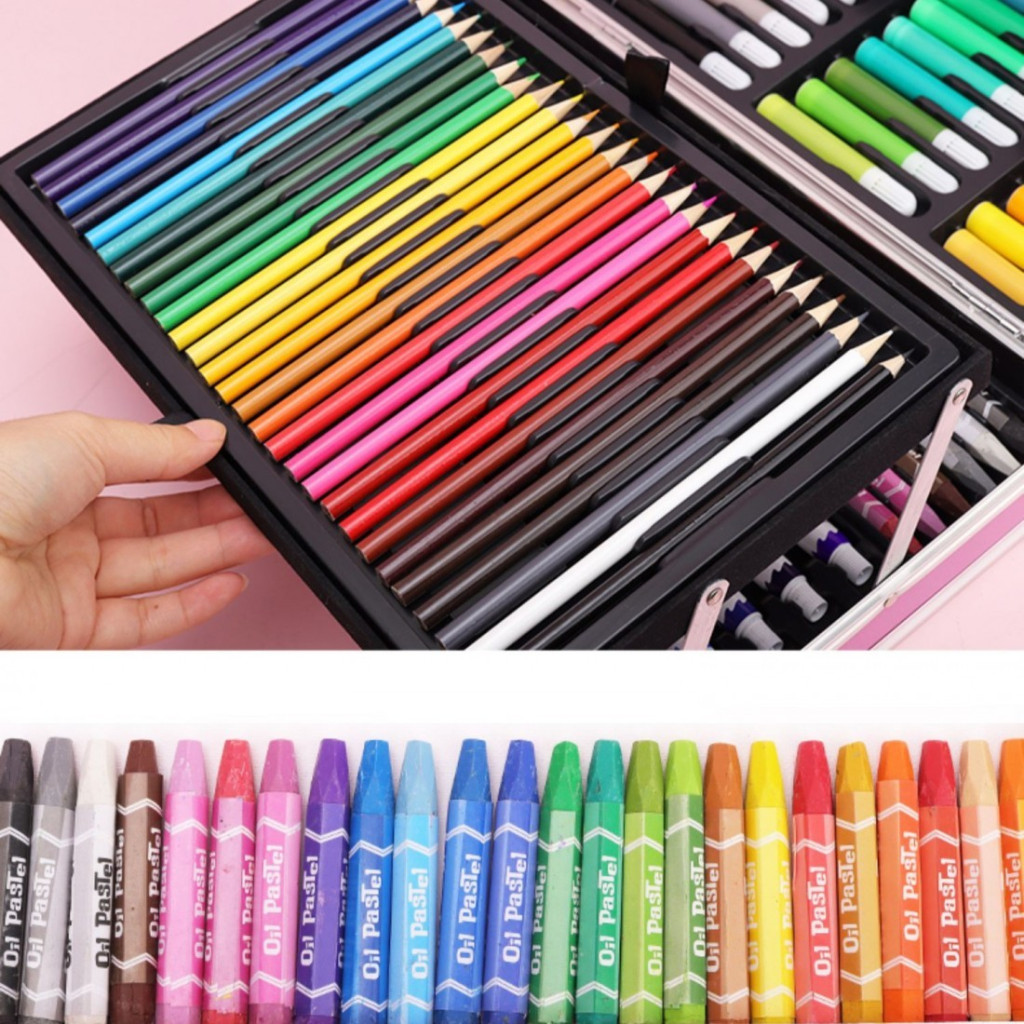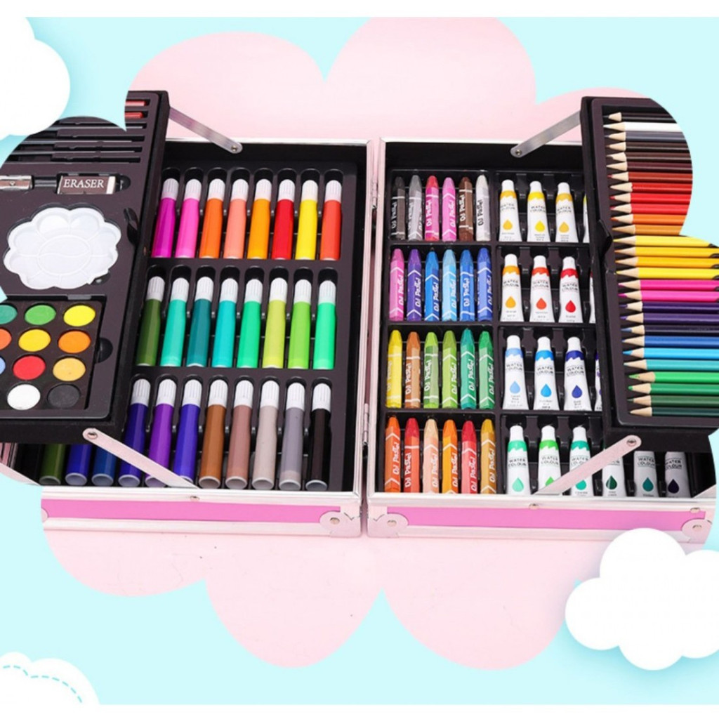 Das Set enthält insgesamt 145 Teile, darunter Farben, Wachsmalstifte, Filzstifte, Ölkreiden und Pinsel, sodass der junge Kreative mit vielfältigen Werkzeugen seine Fähigkeiten entwickeln kann. Die Wasserfarben und Acrylfarben bieten die Möglichkeit, Maltechniken auszuprobieren, während die Wachsmalstifte und Filzstifte für präzises Zeichnen verwendet werden können. Mit diesem Set kann das Kind in verschiedenen Stilen und Techniken kreativ sein, was die Fantasie anregt und vollständige kreative Freiheit bietet.
