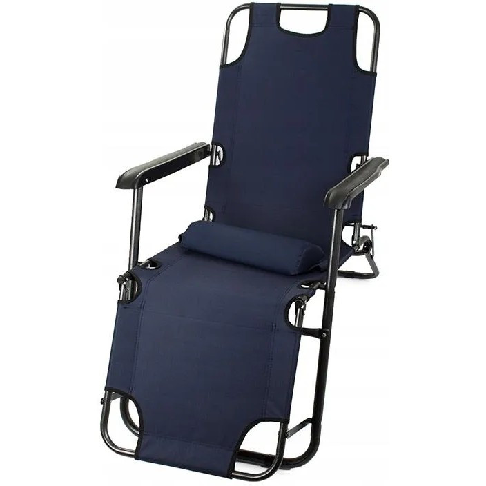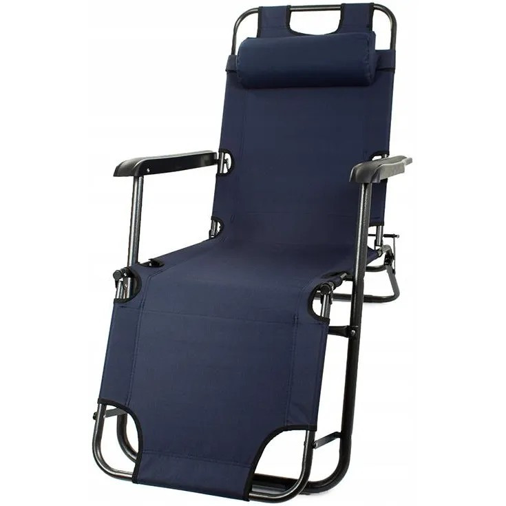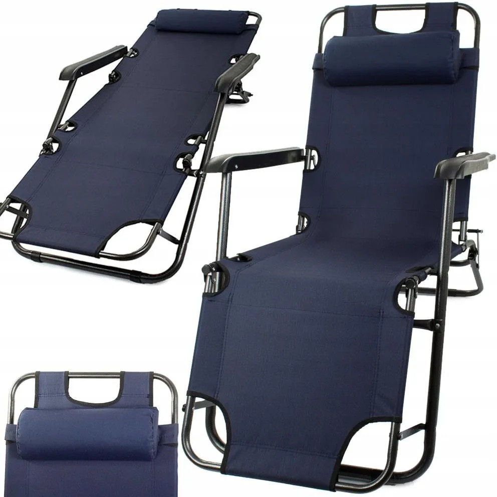 Der Liegestuhl zeichnet sich auch durch seine durchdachte Praktikabilität aus. Er verfügt über ein schnelles Falt- und Entfaltungssystem, wodurch er äußerst leicht zu lagern und zu transportieren ist. Die fixierbare Position bietet Stabilität und Sicherheit, nachdem Sie den idealen Neigungswinkel gewählt haben. Der Komfort wird durch die langlebigen Armlehnen und die verstellbare Kopfstütze erhöht, die Sie mühelos an Ihre Bedürfnisse anpassen können. Das Möbelstück hat eine Tragfähigkeit von bis zu 120 kg, was seine robuste Bauweise unterstreicht.