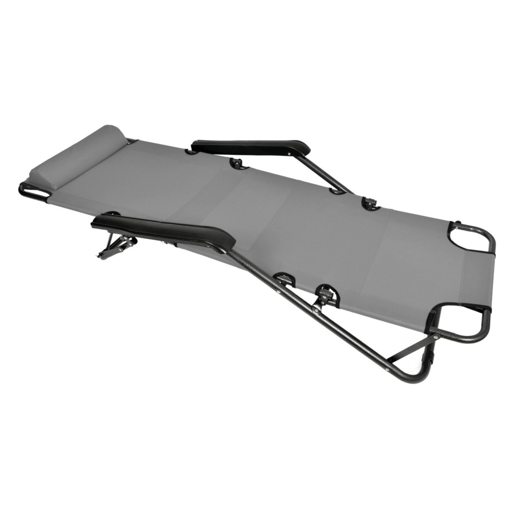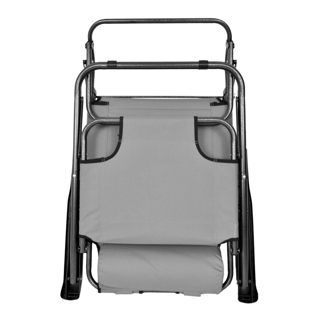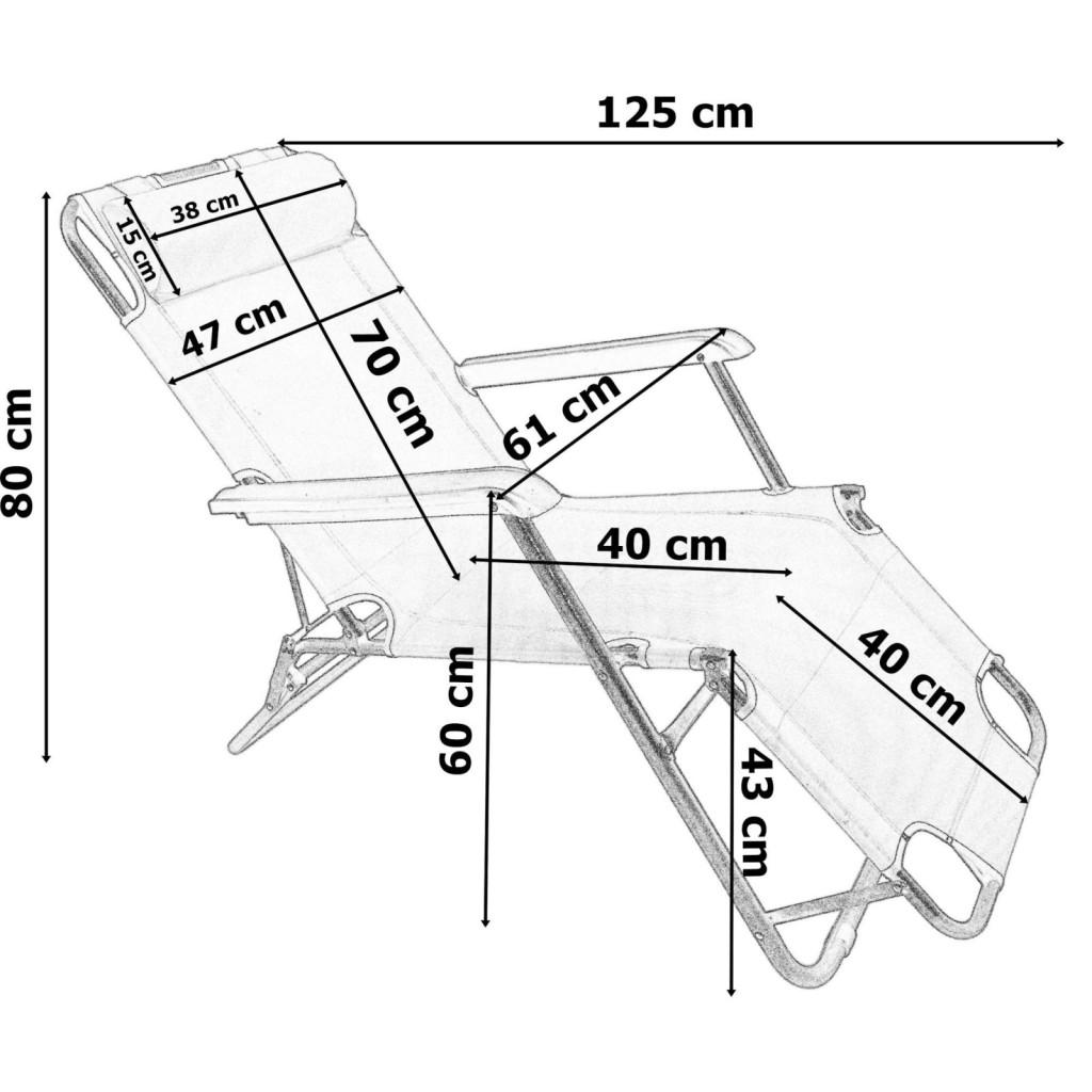 Der Liegestuhl zeichnet sich auch durch seine durchdachte Praktikabilität aus. Er verfügt über ein schnelles Falt- und Entfaltungssystem, sodass er äußerst einfach zu lagern und zu transportieren ist. Die fixierbare Position bietet Stabilität und Sicherheit nach der richtigen Winkelverstellung. Der Komfort wird durch die langlebigen Armlehnen und die verstellbare Kopfstütze erhöht, die Sie mühelos an Ihre Bedürfnisse anpassen können. Die Tragfähigkeit des Möbelstücks beträgt bis zu 120 kg, was seine massive Bauweise bestätigt.