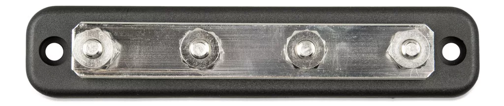Ez a nagyáramú, 600A terhelhetőségű közösítő sín ideális megoldás akkumulátoros rendszerek, napelemes (szolár) telepítések, lakóautók, hajók és ipari DC elosztók számára. A masszív rézsín és a biztonságos fedél együtt gondoskodnak a megbízható áramelosztásról és az átlátható kábelezésről, még nagy teljesítményű rendszerekben is.