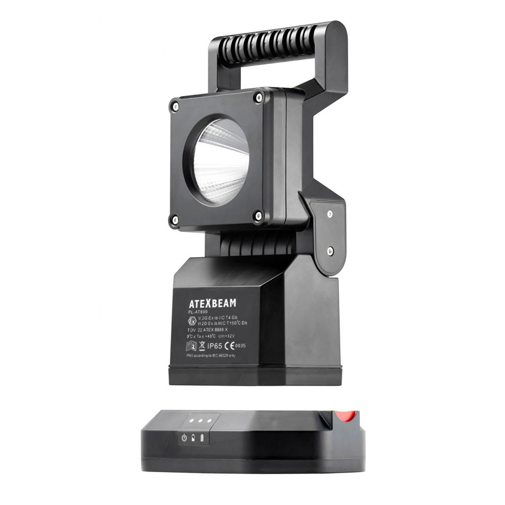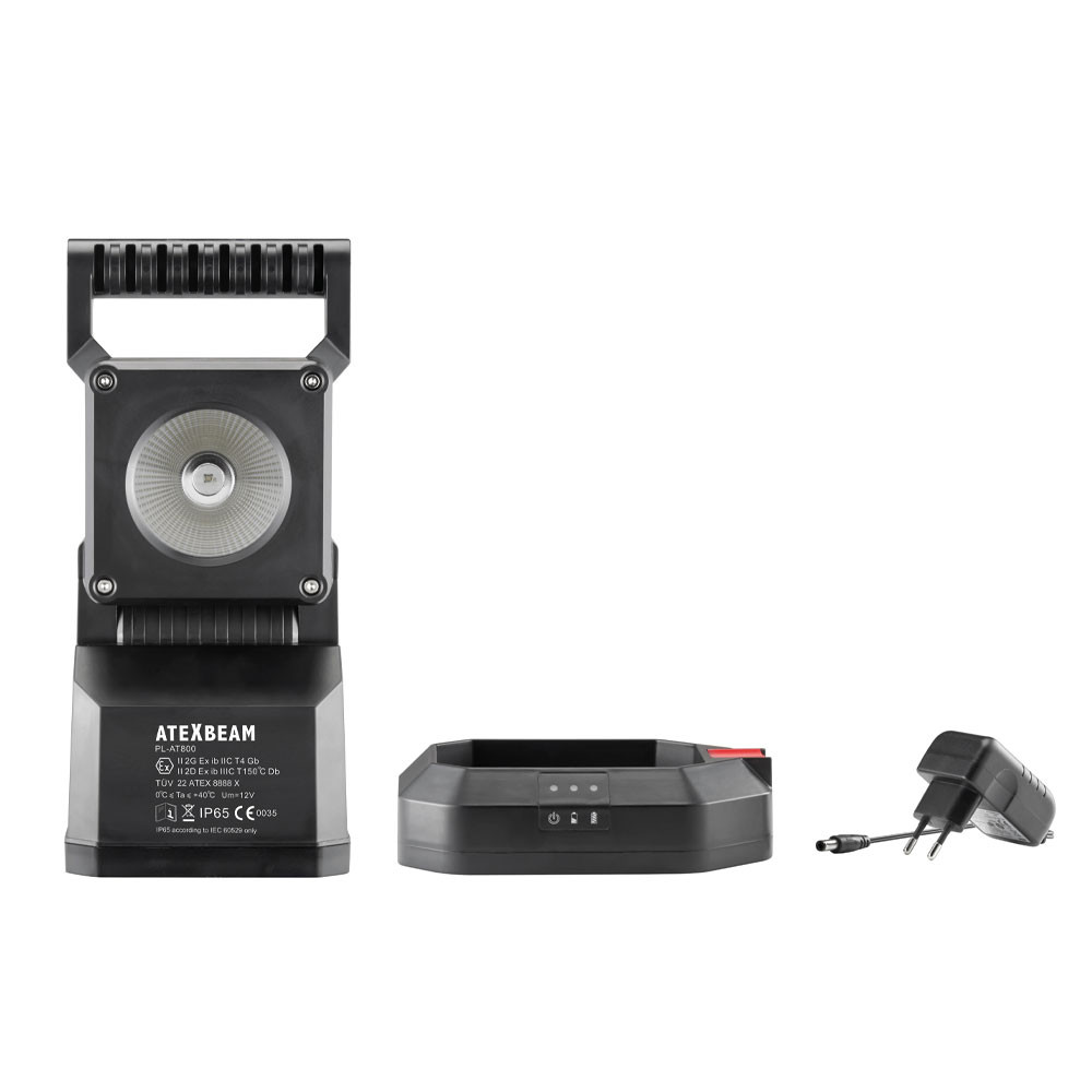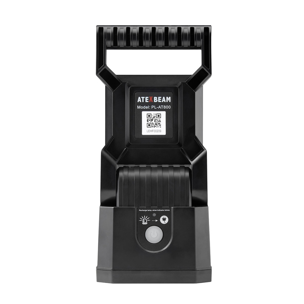 Outside the Ex area, the luminaire can also be used as emergency lighting. Functionality: If the PL-AT800 is in the charging cradle during a power failure and is connected to the mains, it will automatically switch on because to the integrated emergency lighting function. When power is restored, the lamp automatically turns off. In the event of a power failure, the Ex lamp thus becomes a reliable light source, e.g. in industrial and production halls, machine rooms or other rooms without windows or in the dark.