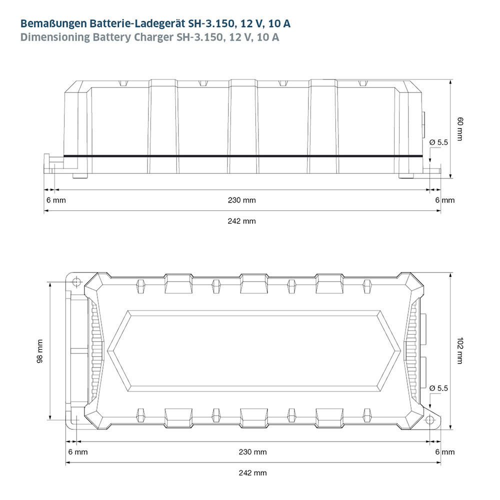 Battery Charger Staudte Hirsch SH-3.150, 12 V, 10 A Adapter cable with battery clamps Adapter cable with eyelet rings Instruction manual in DE, GB