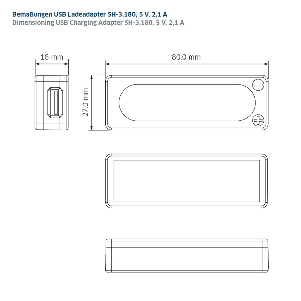 USB Charging Adapter Staudte Hirsch SH-3.180, 5 V, 2.1 A Adapter cable with eyelet rings Operating instructions DE, GB