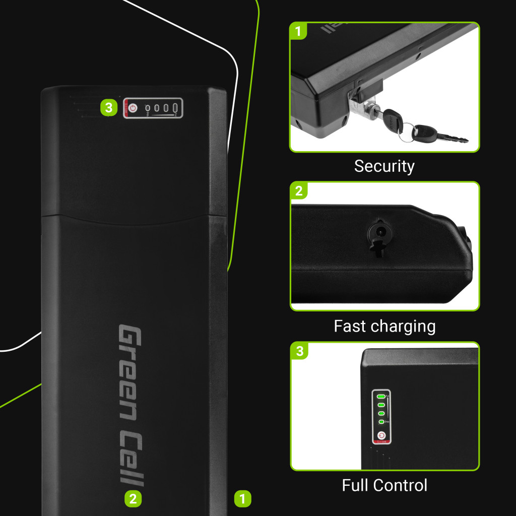 Green Cell Li-Ion cells - which form the heart of the battery - are characterized by high capacity and durability. This provides greater range on a single charge, longer battery life, and an efficient power source that delivers the necessary instantaneous and continuous energy for the electric motor.