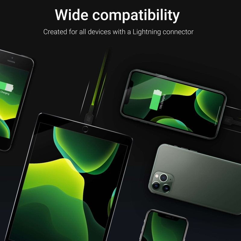 Warranty: 12 months | Condition: New | Color: Black | Refund option: Up to 14 days | Product code: KABGCSET06 | Manufacturer: Green Cell | Length: 200 cm | Connector type: USB - lightning