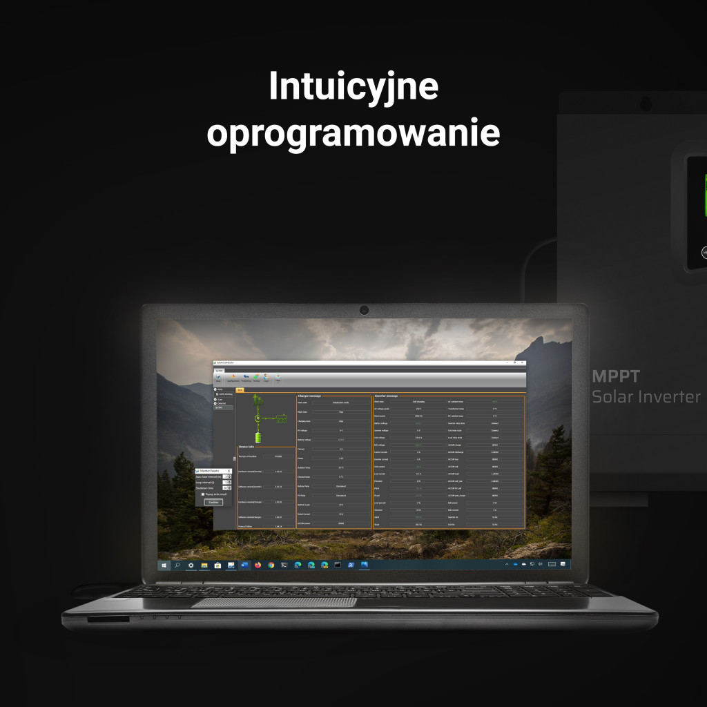 The built-in MPPT controller in the inverter allows it to convert energy from solar panels into electrical current with the appropriate parameters needed to charge home batteries and power supplies.