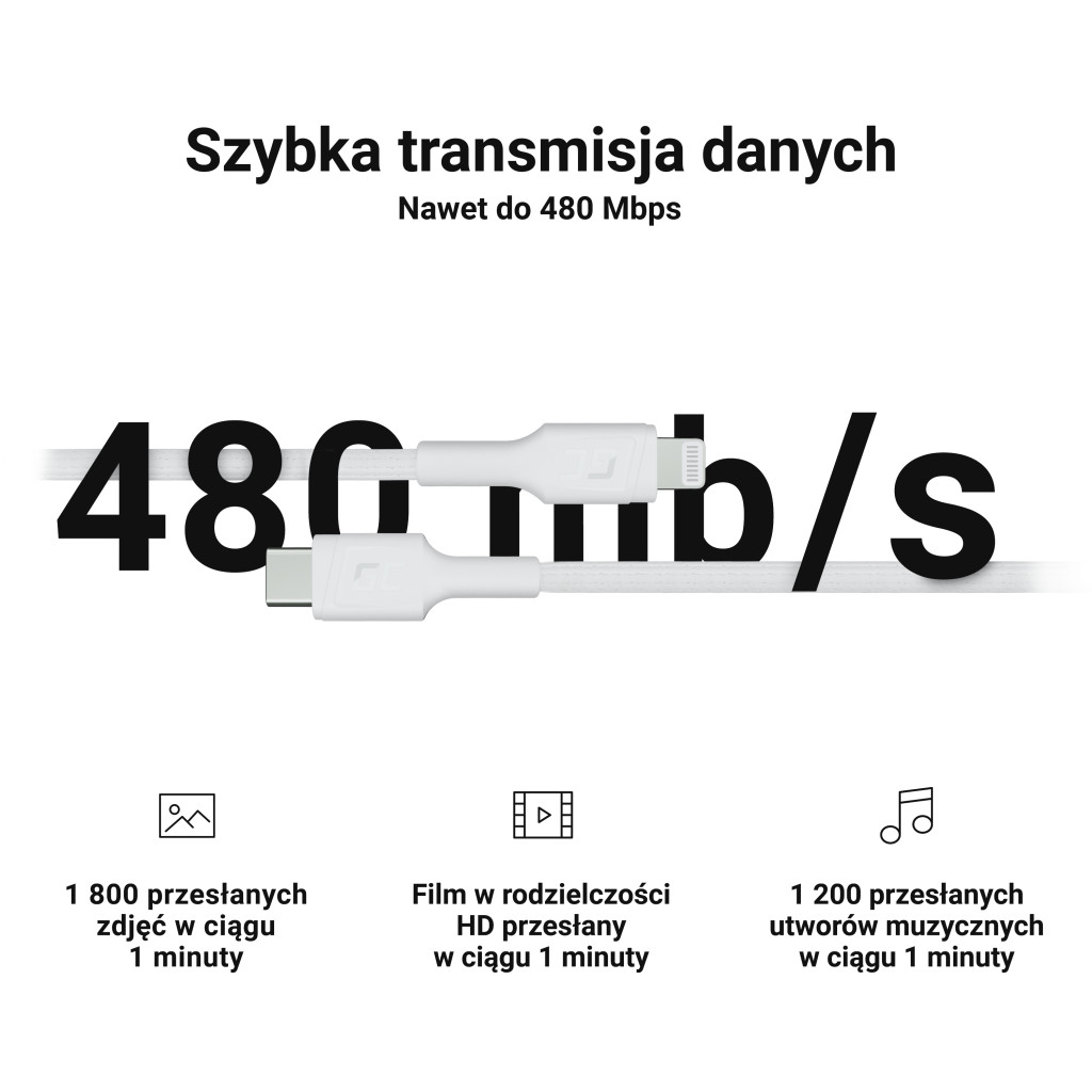 Warranty: 24 months | Overheating protection: Yes | Overvoltage protection: Yes | Condition: New | Color: White | Refund option: Up to 14 days | Product code: KABGC07W | Length: 1.0M | Connector type: USB-C - Lightning