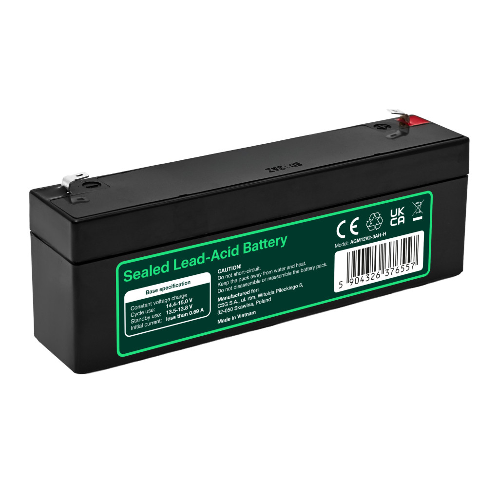 Greencell AGM VRLA 12V 2.5Ah maintenance-free battery for cash registers, toys, cameras 178x36x66mm AGM12V2-3AH-H