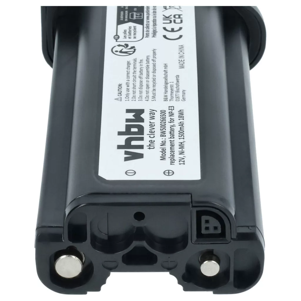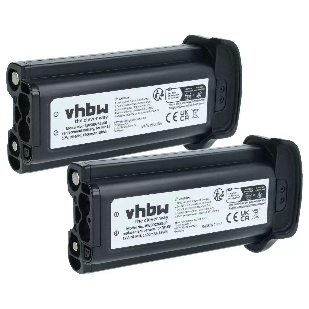Compatible batteries that breathe new life into your Canon camera, DSLR. High-quality spare parts with optimal price-performance ratio. Reliable functionality and full compatibility with your digital camera. Precisely manufactured for a perfect fit in your device. CE and RoHS certified - meets all operational safety guidelines. High-quality NiMH cells for optimal device performance. Nickel-metal hydride batteries are similar to nickel-cadmium cells but have a higher energy density at the same voltage (approximately twice). Thanks to their low internal resistance, NiMH batteries can also be used in high energy-consuming devices, but at a low cost, such as small LED lamps, toys, audio and camera equipment, phones, electric toothbrushes, shavers, power tools, and remote-controlled electric models. Compatible devices: Canon EOS 1D Mark II, Canon EOS 1D Mark II N, Canon EOS 1Ds Mark II